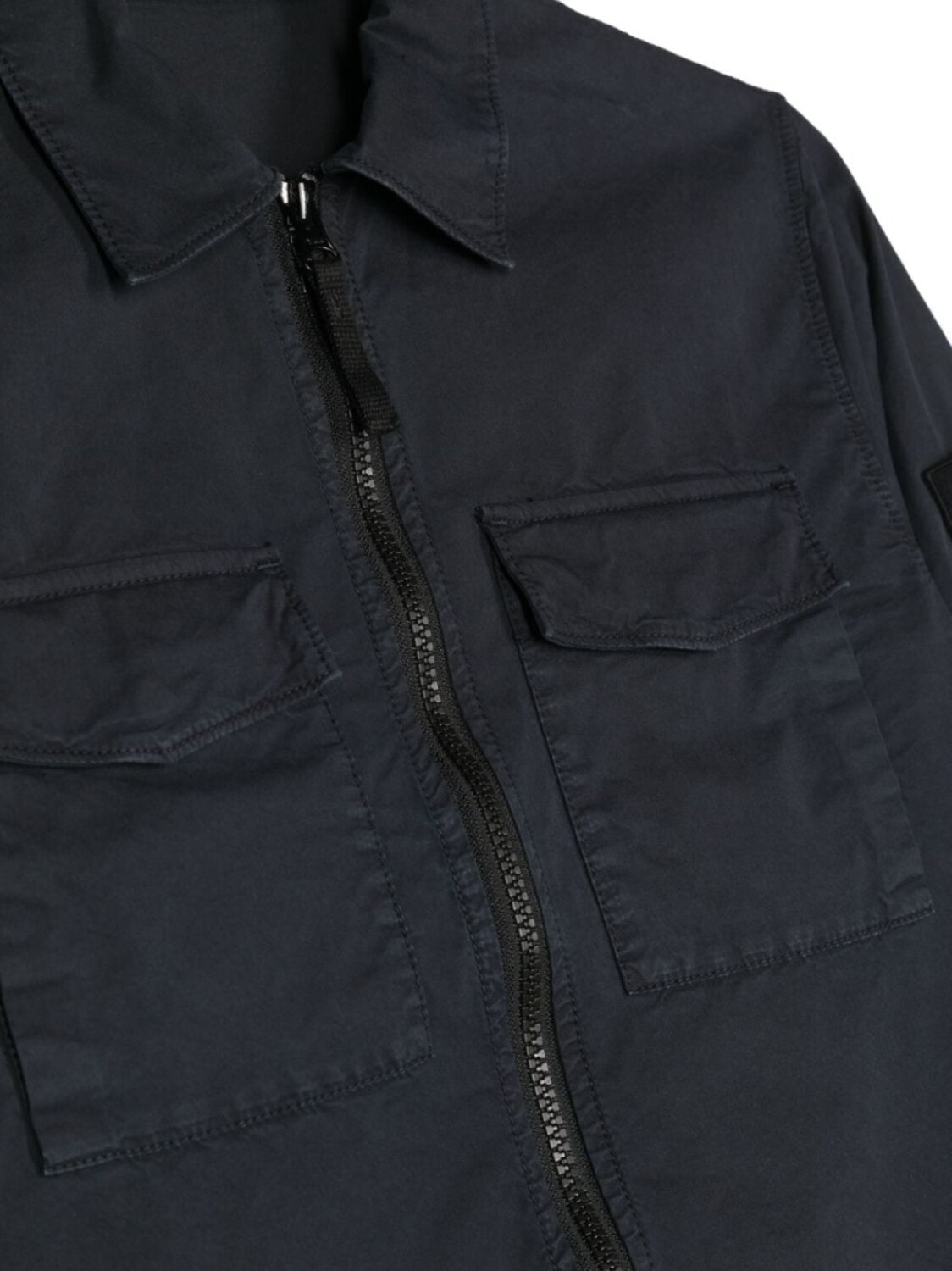 Нашивка с логотипом на рукаве, классический воротник и два нагрудных кармана с клапанами.