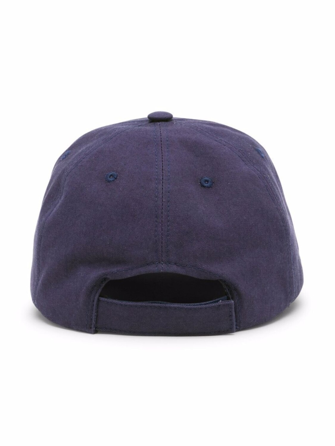 Темно-синий, хлопок, вышитый логотип, закругленный козырек и застежка на липучке сзади.