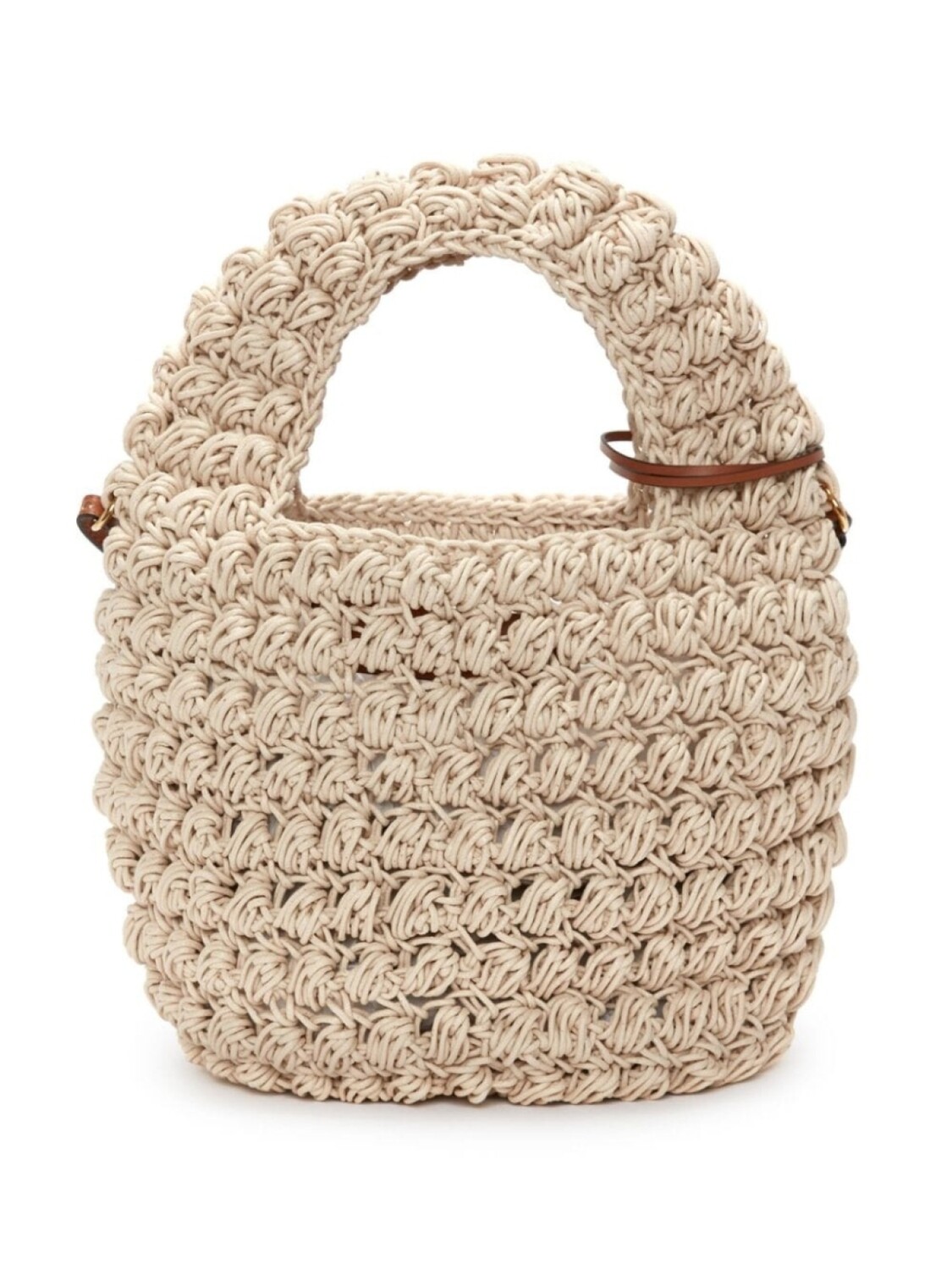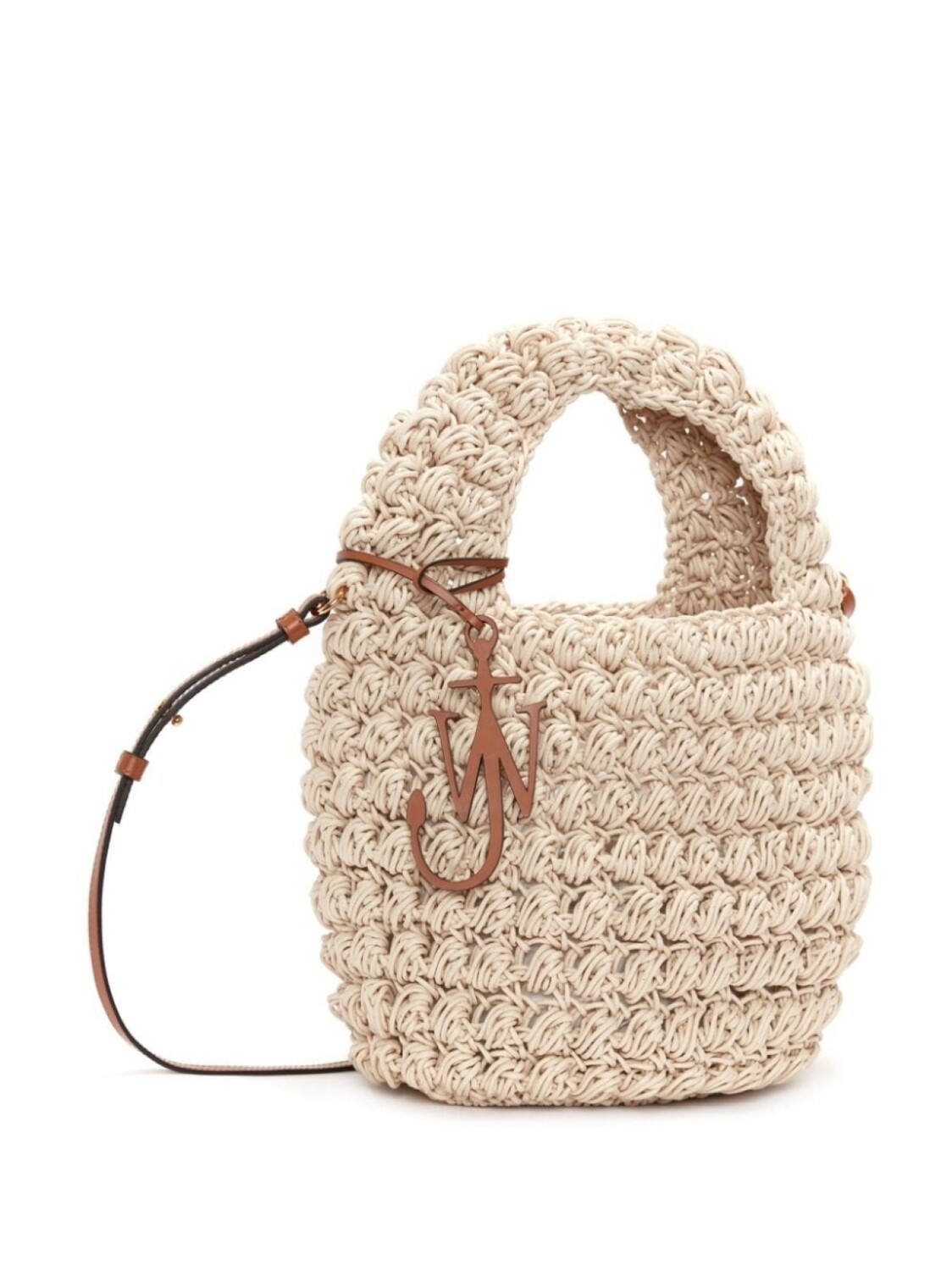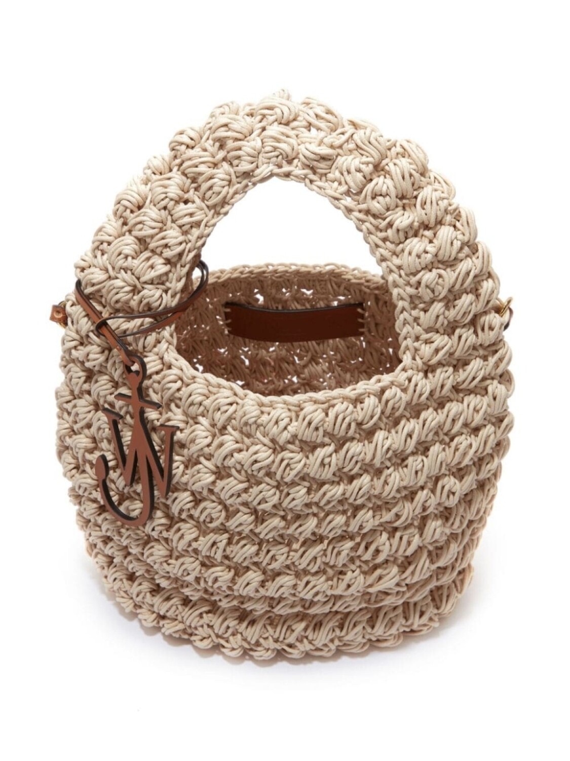 Кремовый, хлопок, вязаный узор «попкорн», верхняя ручка, логотип с инициалами JW в виде якоря, съемный регулируемый ремень на плечо, дизайн с открытым верхом, нашивка с логотипом внутри и основное отделение.
