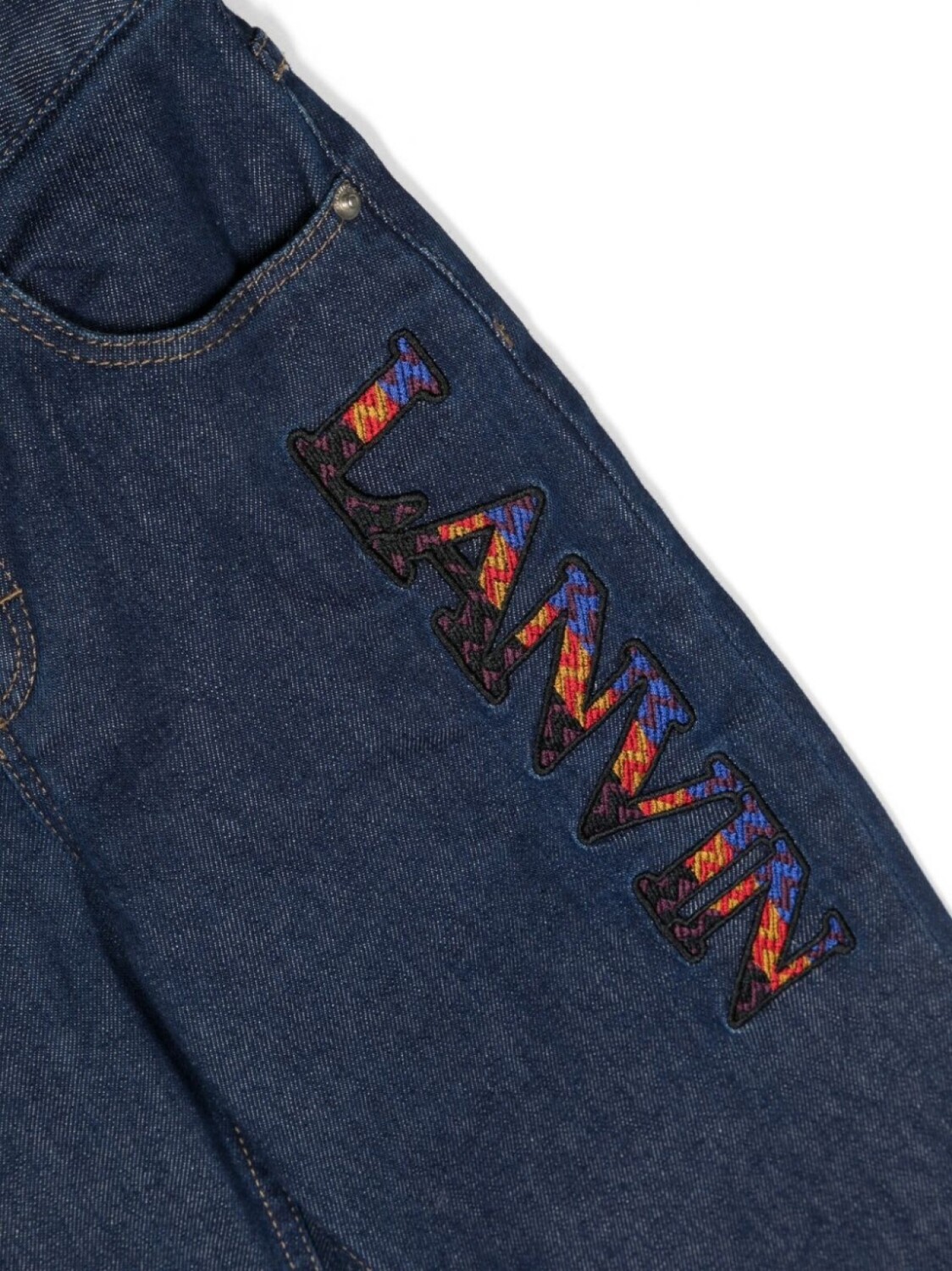 Lanvin Enfant прямые джинсы Curb с вышитым логотипом, синий