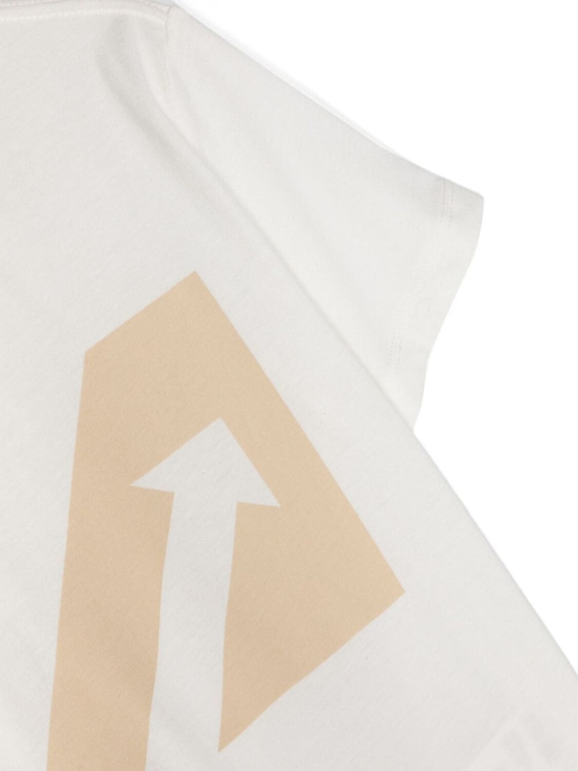 Белый, хлопок, ткань джерси, принт с логотипом сзади, графичный принт спереди, круглый вырез, приспущенные плечи, короткие рукава и прямой подол.