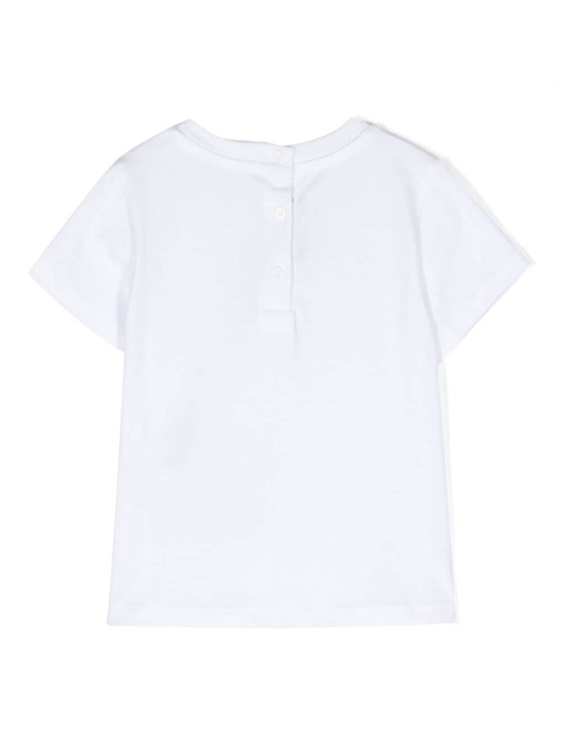 Белый, хлопок, ткань джерси, круглый вырез, короткие рукава, логотип спереди, прямой подол, застежка на кнопках сзади