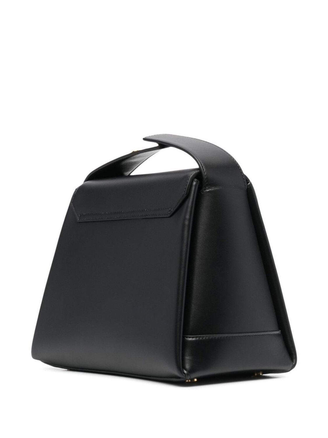 Черный, телячья кожа, золотистая фурнитура, застежка с клапаном спереди, регулируемая ручка и основное отделение.