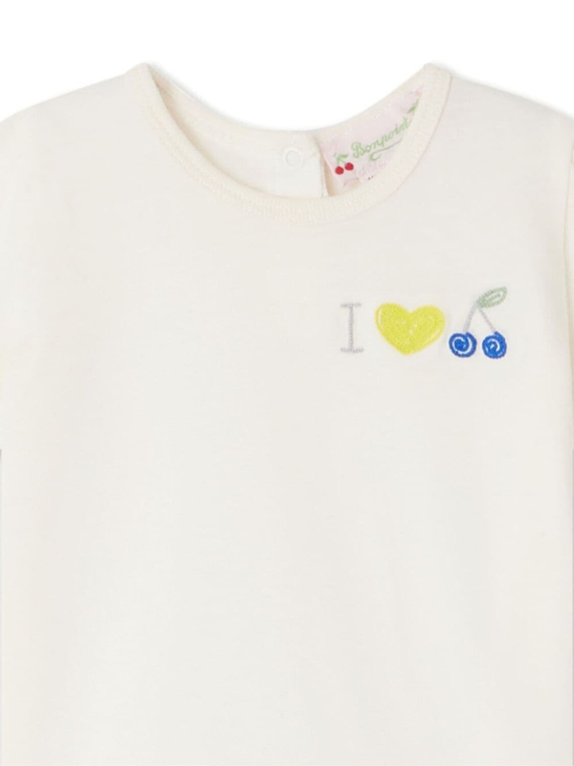 Белый/разноцветный, хлопок, мягкий джерси, вышитый логотип на груди, узор с изображением сердца, круглый вырез, застежка на пуговицы сзади, короткие рукава, прямой подол