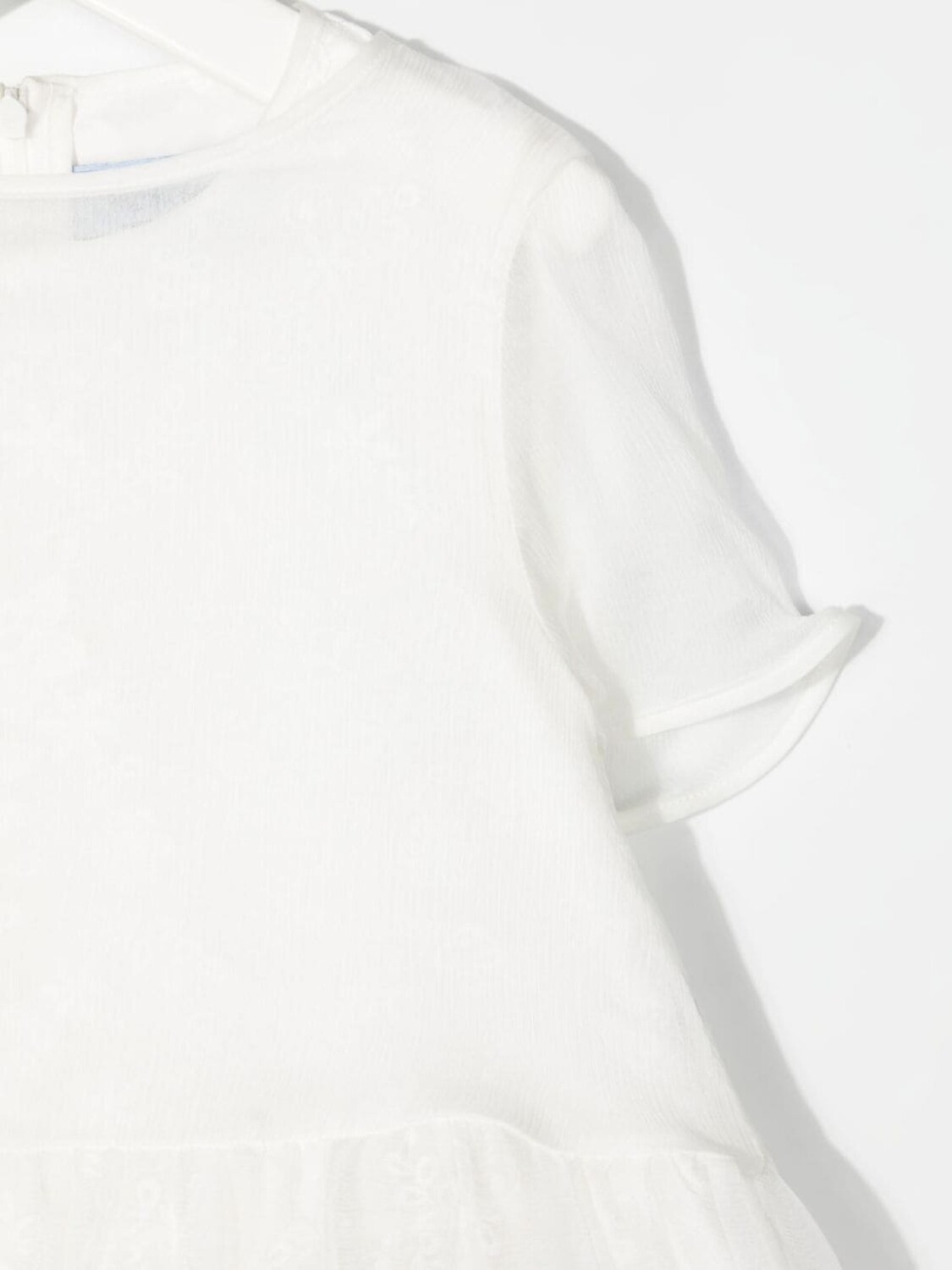 Вставки, кружевная отделка, круглый вырез, застежка на молнии сзади, короткие рукава, расклешенная юбка и прямой подол.