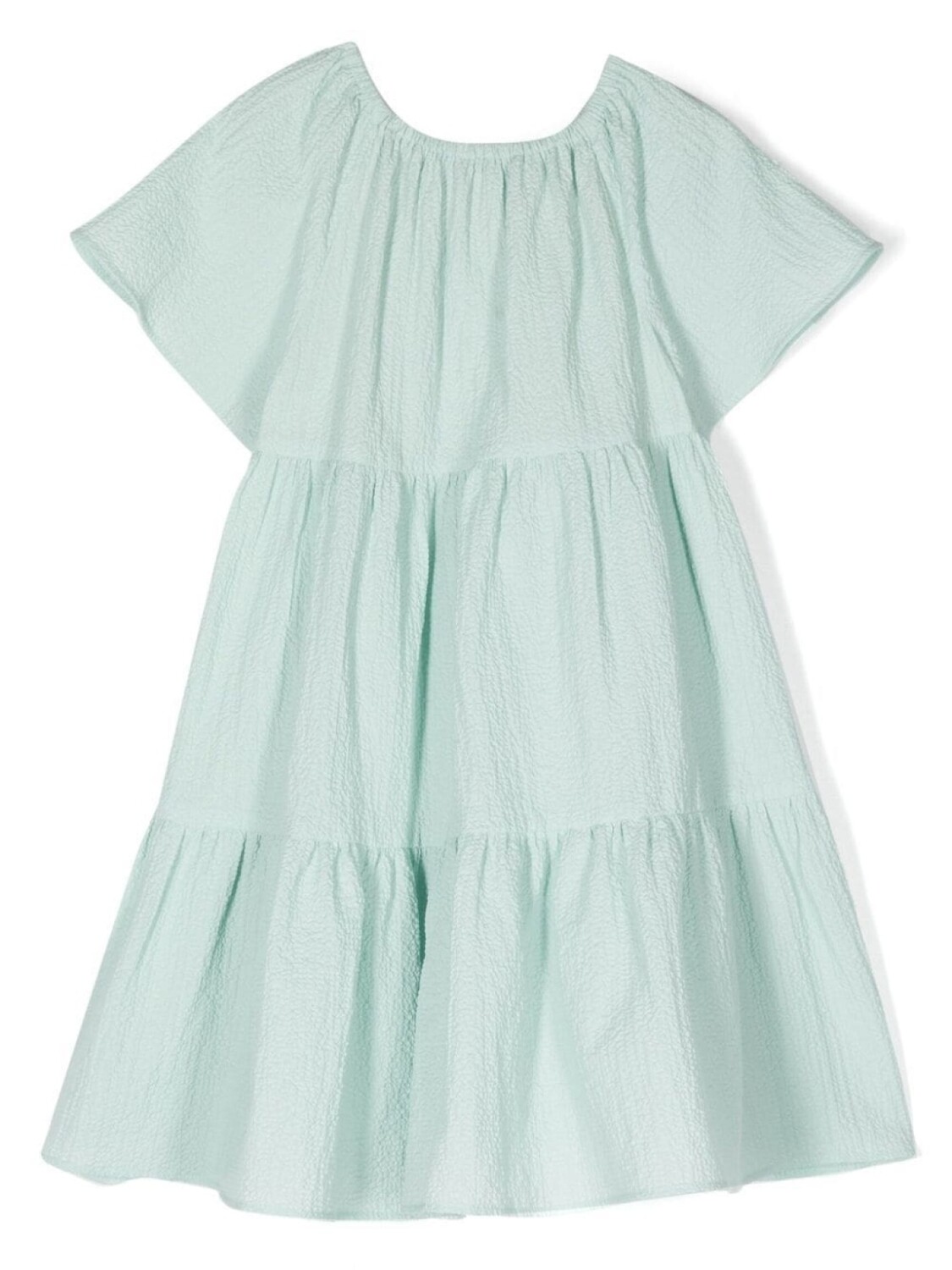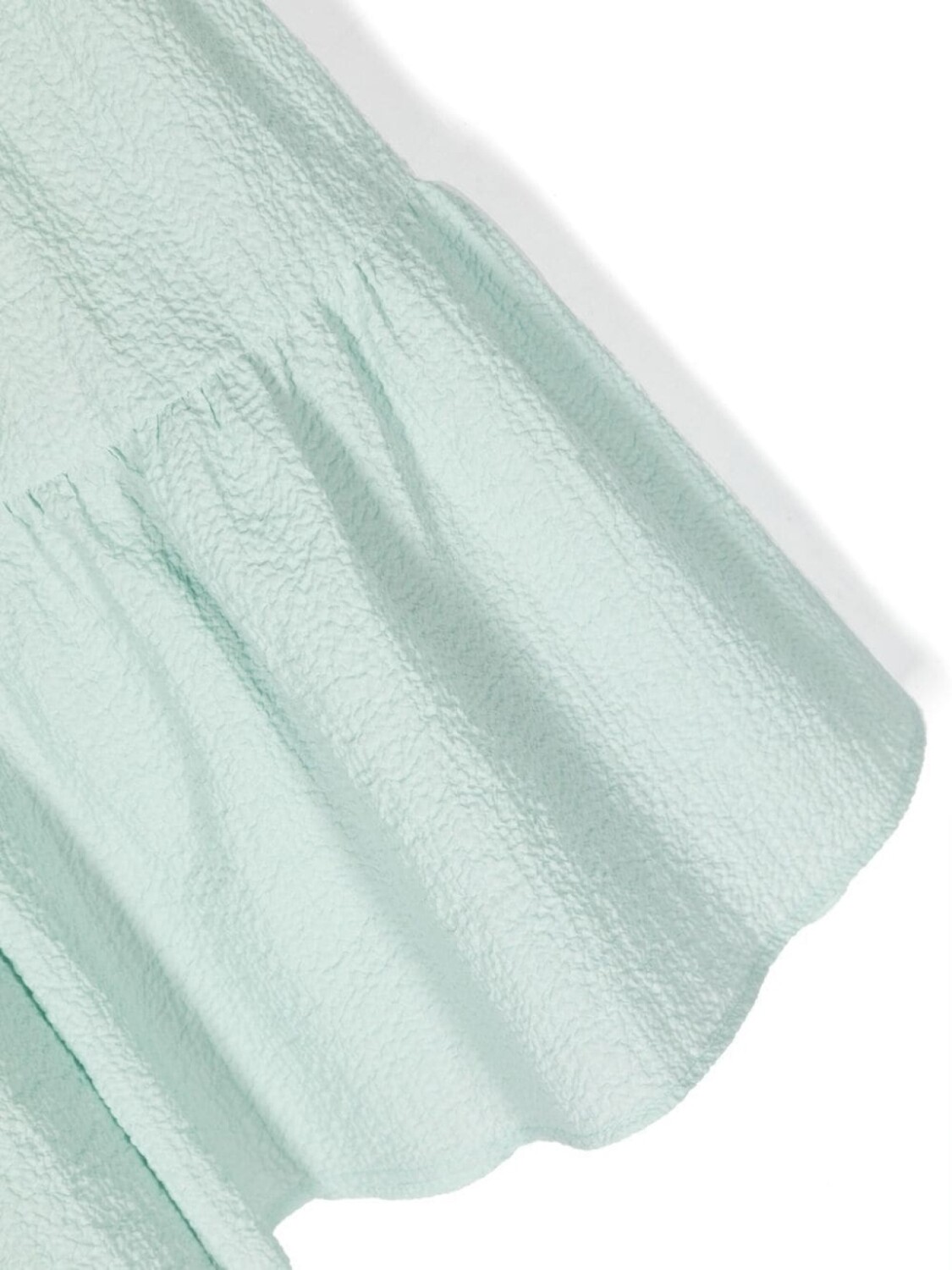 Пастельно-зеленый, эластичный хлопок, ярусная юбка, расклешенный крой и бант.