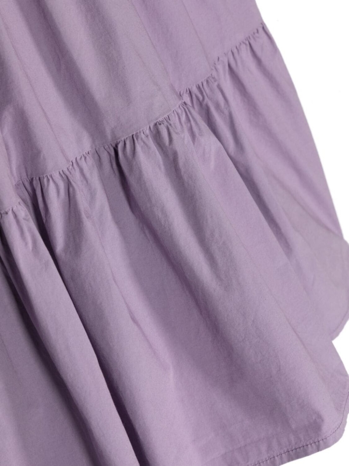 Лиловый, хлопок, поплин, круглый вырез, рукава реглан три четверти, эластичные манжеты, ярусная юбка, расклешенный крой, закругленный подол