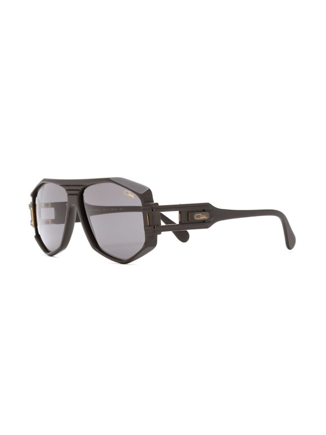 Черные ацетатные солнцезащитные очки-авиаторы от Cazal. Затемненные линзы, прямые дужки с остро изогнутыми концами, наклейка с логотипом, логотип бренда на внешней стороне дужки. Прилагается защитный чехол. Модель в стиле унисекс.