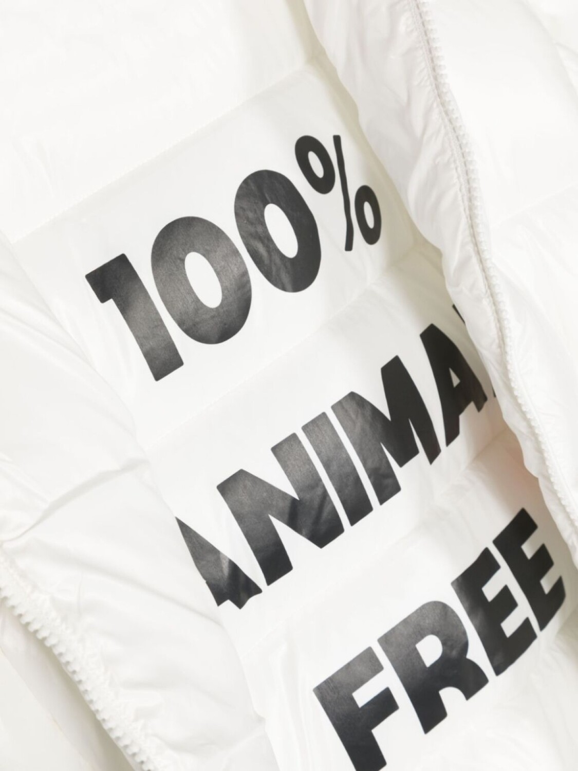 Белый, глянцевый финиш, дутый материал, нашивка с логотипом на рукаве, отделка корсажной лентой, классический капюшон, застежка на молнии спереди, два кармана на молнии по бокам, длинные рукава и прямой подол.