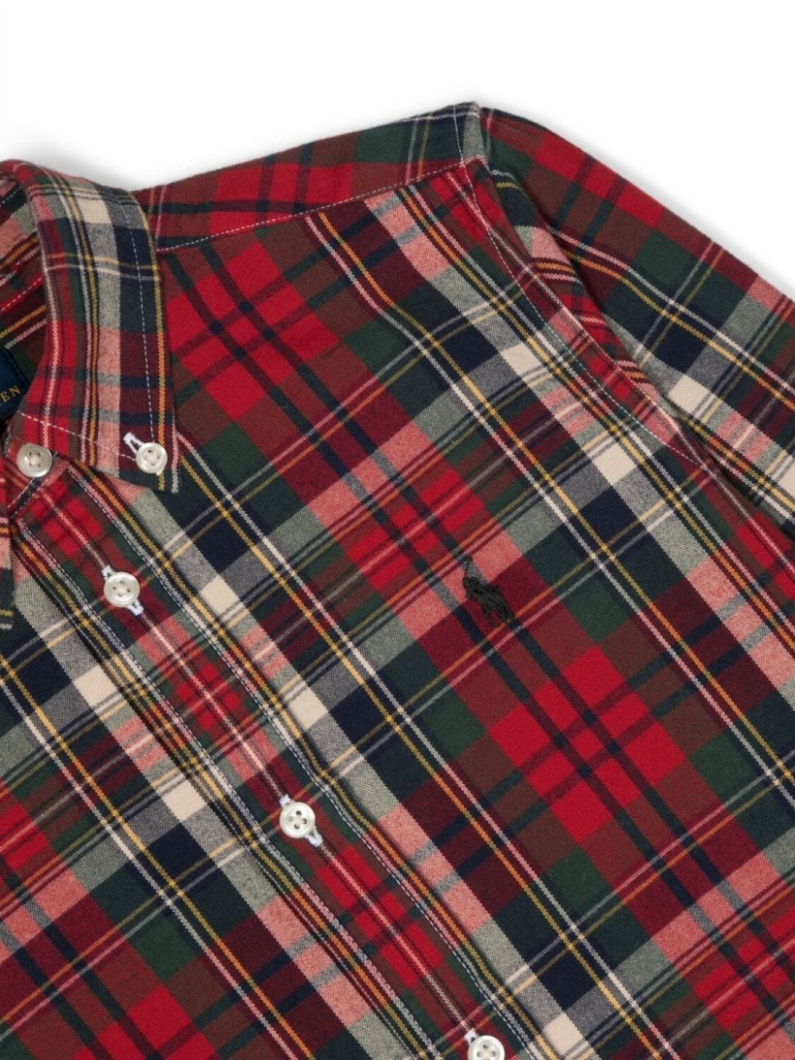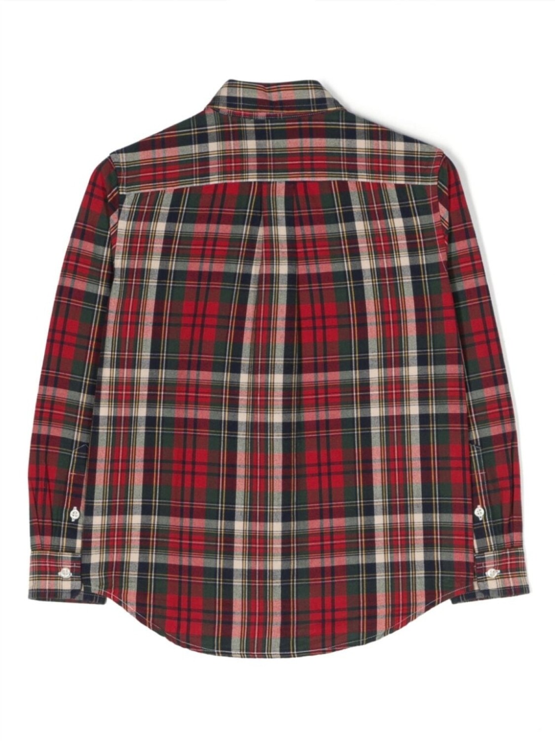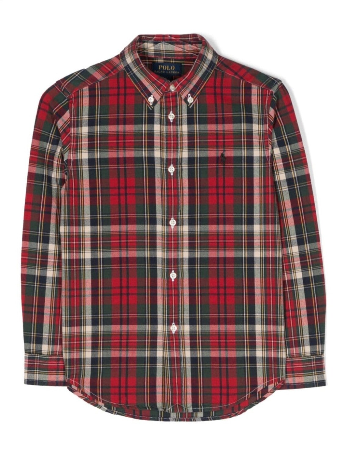 Красный, разноцветный, хлопок, клетчатый узор, знаковый логотип Polo Pony, вышитый логотип на груди, воротник на пуговицах, застежка на пуговицах спереди, длинные рукава, манжеты на пуговицах и закругленный подол.