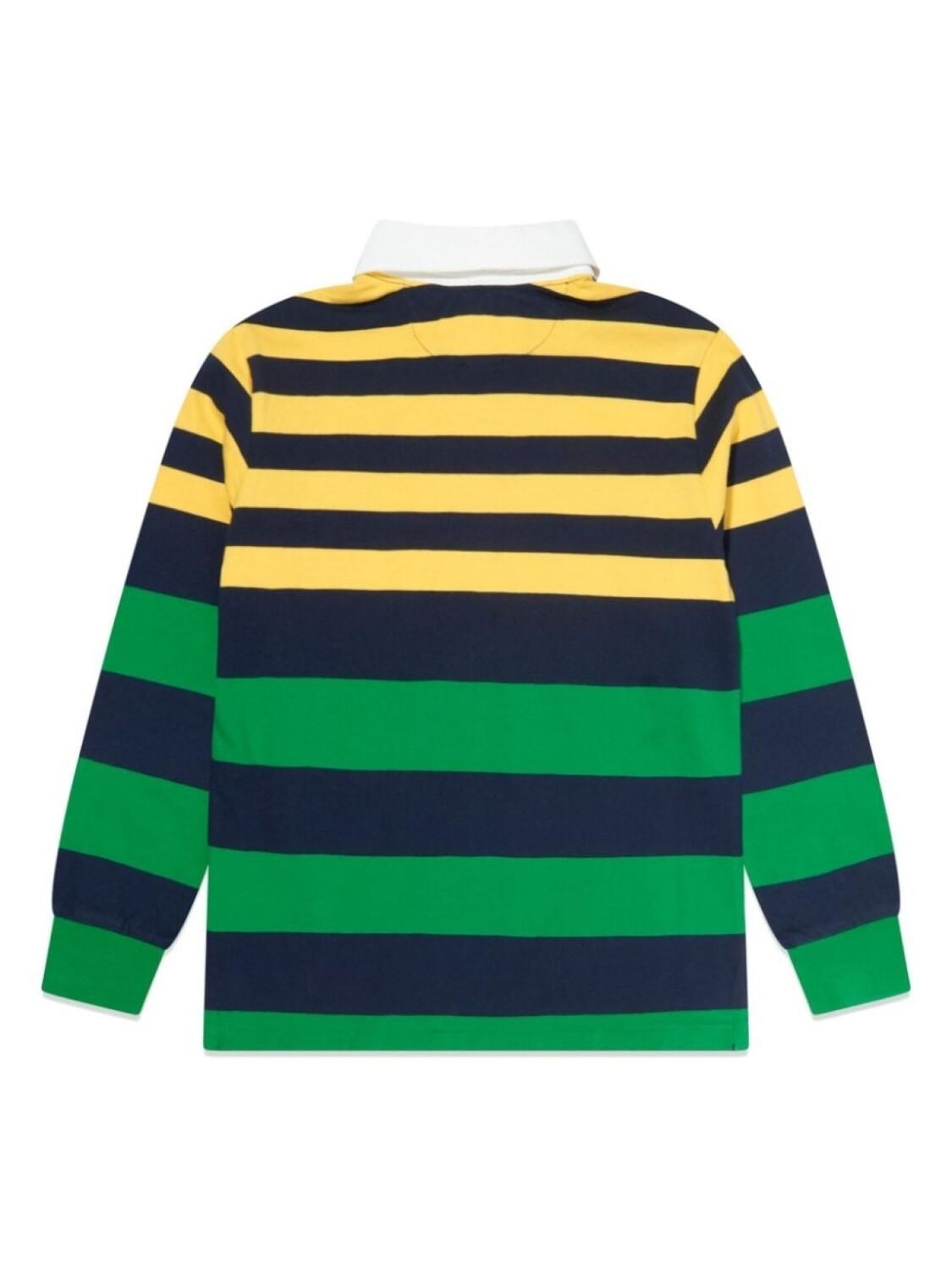 Желтый/зеленый/темно-синий, хлопок, принт в горизонтальную полоску, знаковый логотип Polo Pony, контрастный воротник, потайная застежка на пуговицах спереди, длинные рукава, манжеты в рубчик, разрезы по бокам, прямой подол