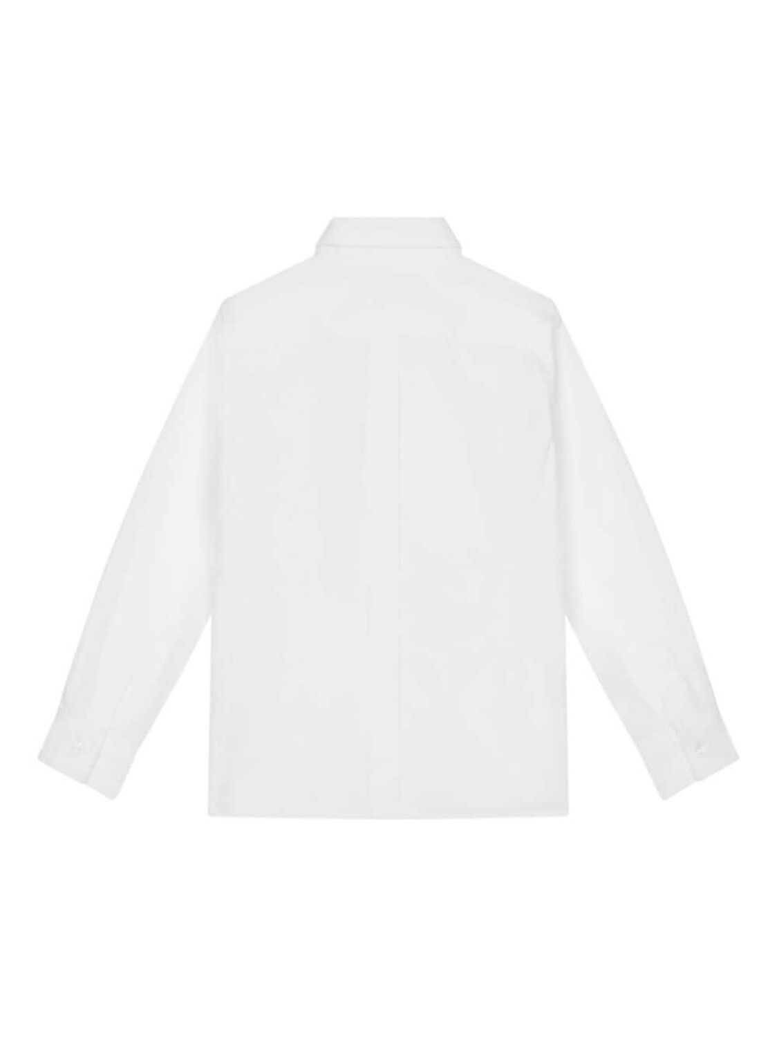 Белый, хлопок, классический воротник, потайная застежка спереди, длинные рукава, рукава с манжетами на пуговицах и прямой подол.