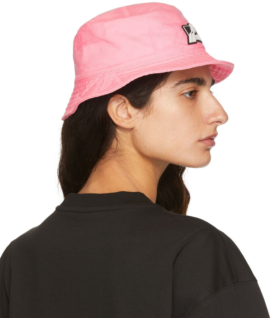Панама из неэластичного денима розового цвета. Прорезиненная черно-белая нашивка с логотипом спереди.