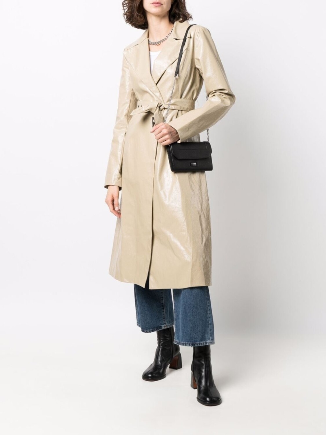 Съемный регулируемый ремень на плечо, откидной клапан на магните, серебристый логотип, внутренние отделения для карт и внутренний карман на молнии. Цвет: черный.