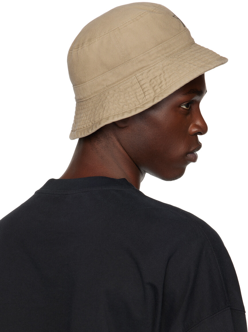 Панама из хлопкового твила бежевого цвета. Логотип напечатан черным цветом на лицевой стороне.