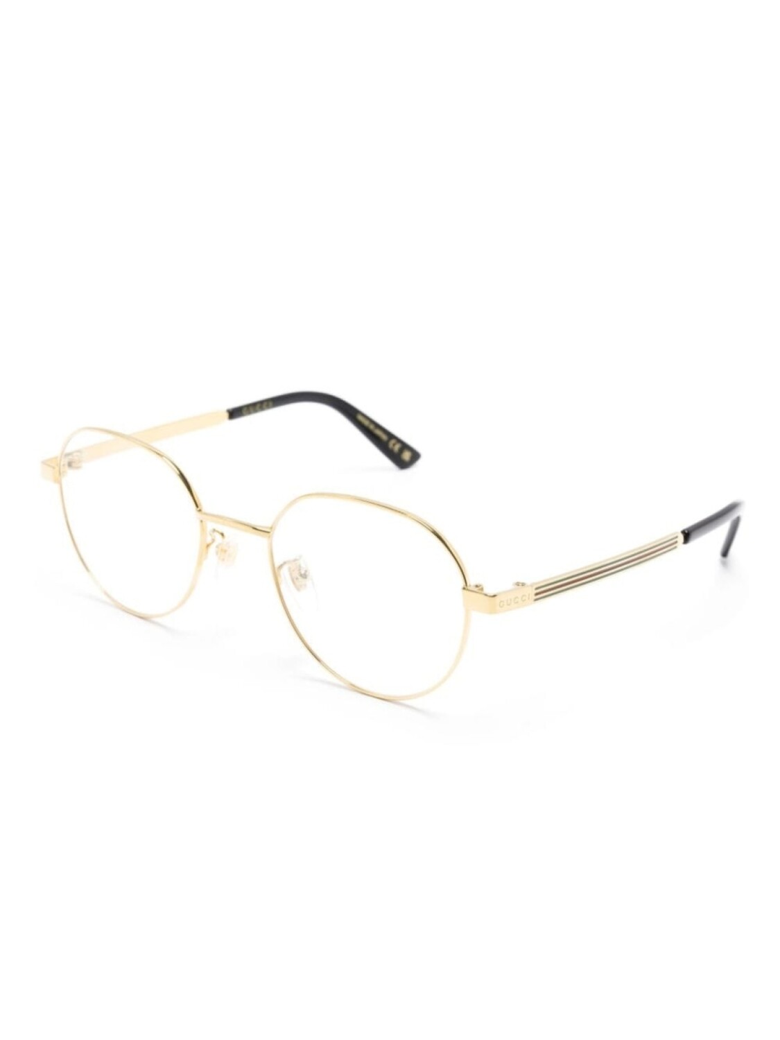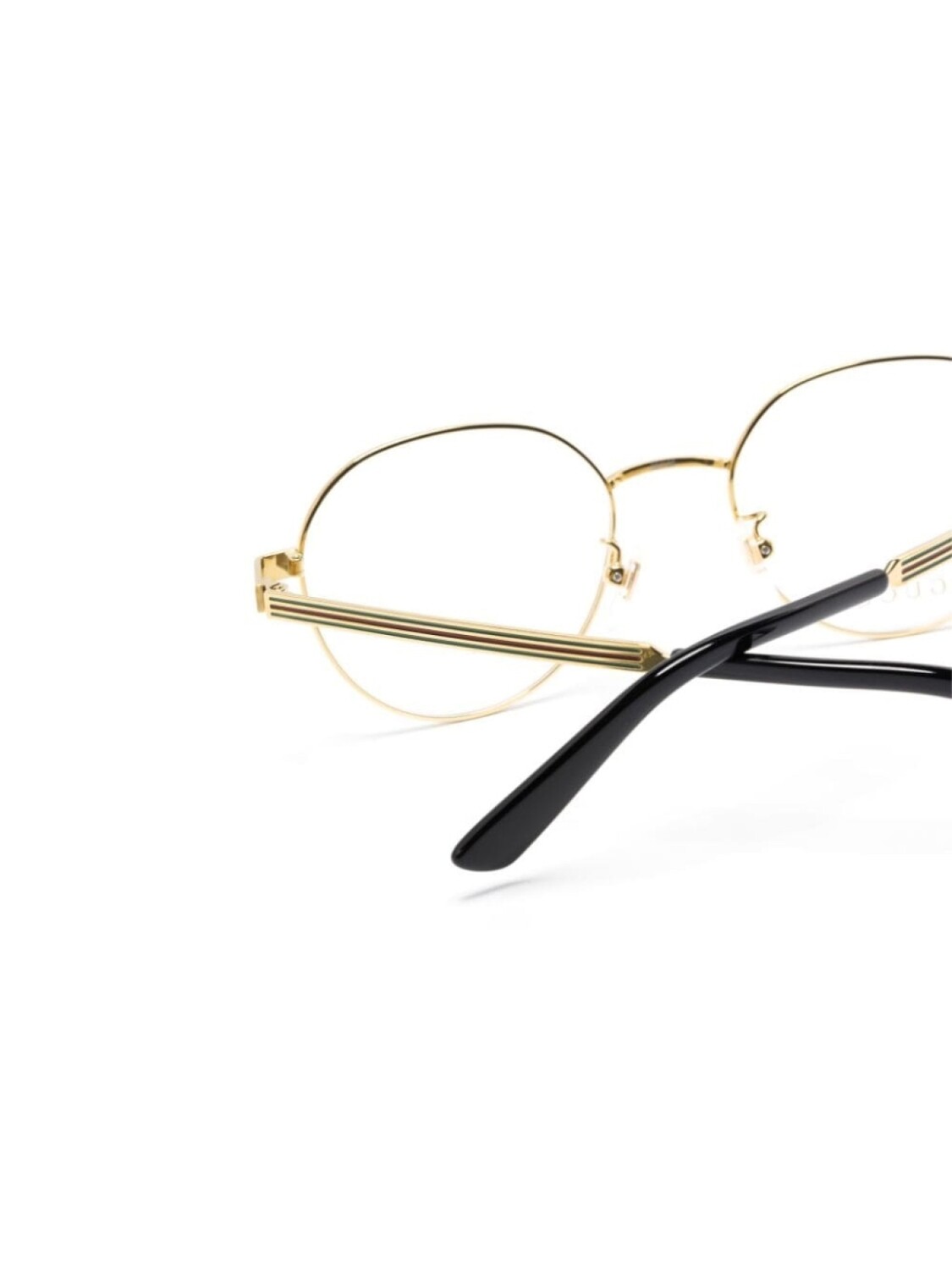Золотистый, титан, круглая оправа, прозрачные линзы, носоупоры, тисненый логотип на дужке, прямые дужки с закругленными концами, В комплект входит защитный чехол для очков., Обратите внимание, что на FARFETCH продаются оправы с линзами без диоптрий.