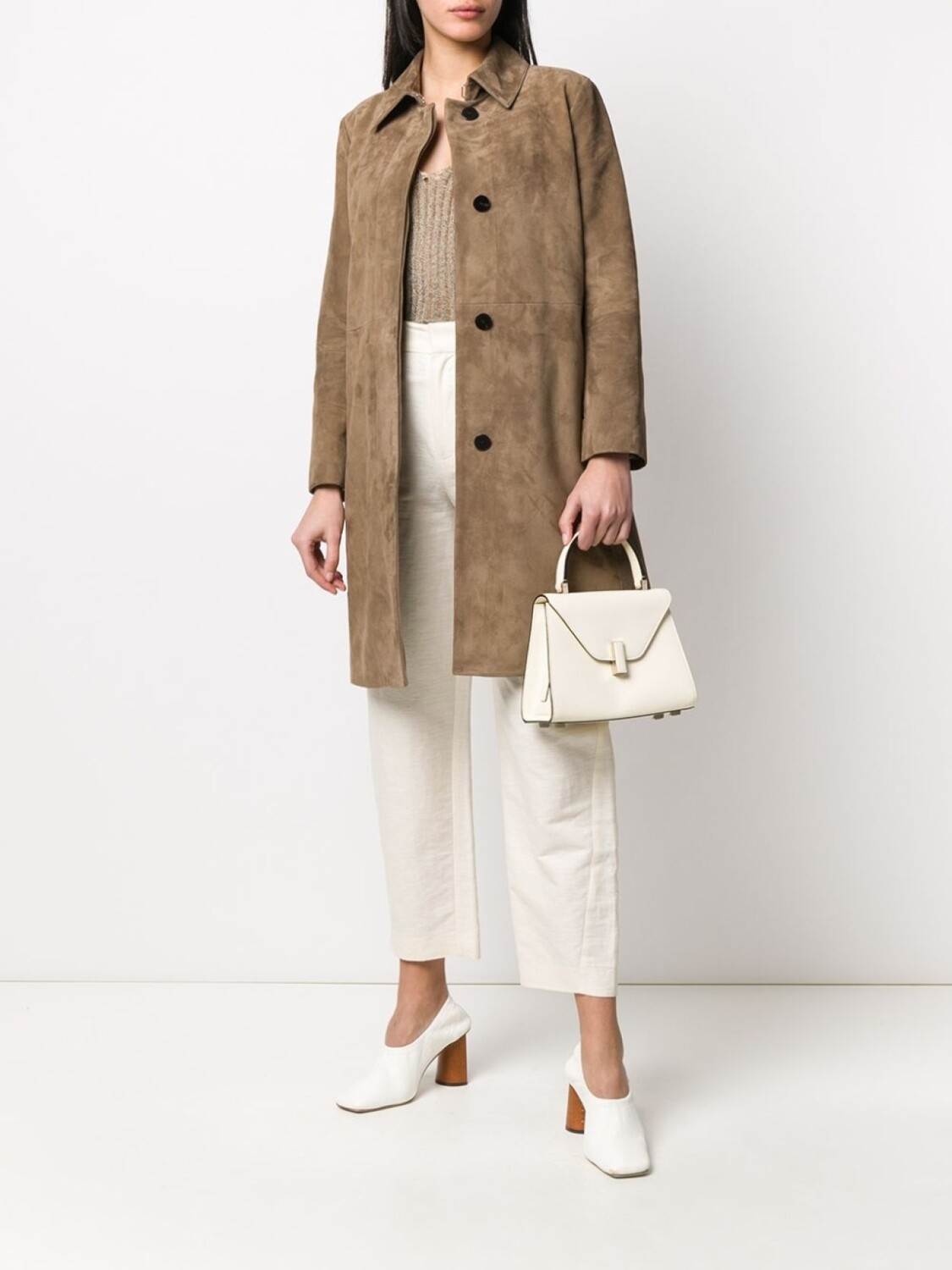 Сумка-тоут Iside от Valextra. Верхняя ручка, съемная лямка на плечо, ножки сумки, откидной верх с застежкой-защелкой, внутренняя печать с тисненым логотипом и внутренний прорезной карман. Цвет: белый.