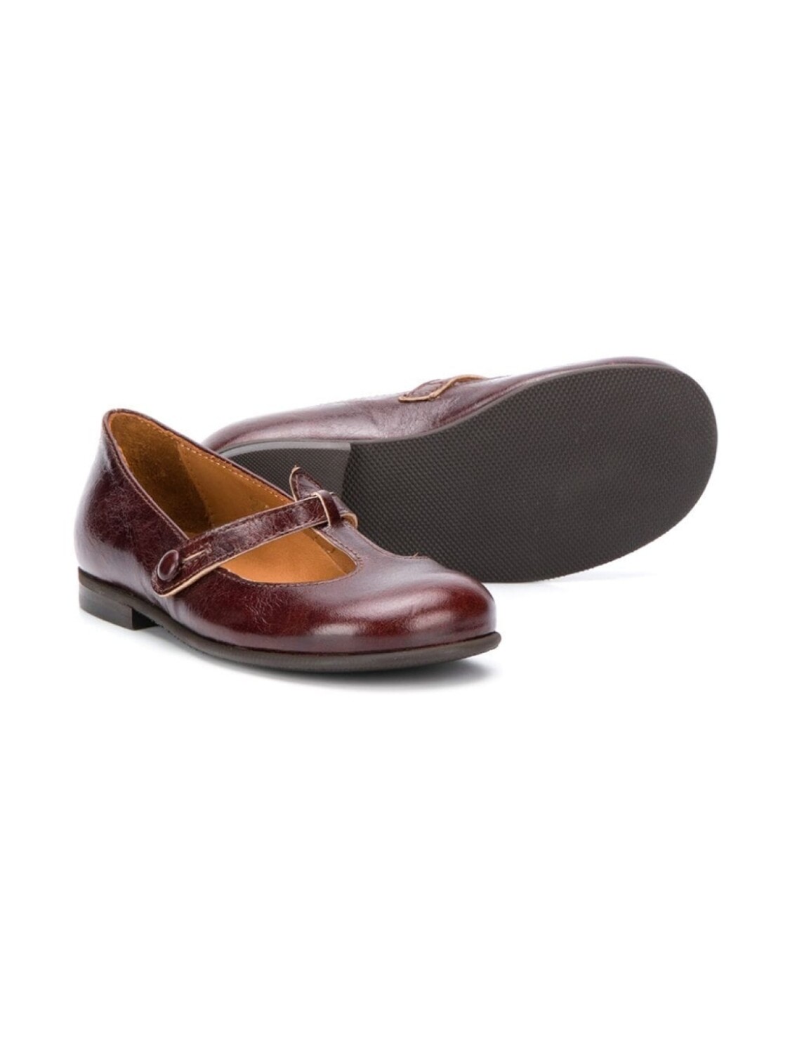 Балетки с застежкой на пуговице от Pèpè. Кожаная стелька, закругленный носок, боковая застежка на пуговице и резиновая подошва.
