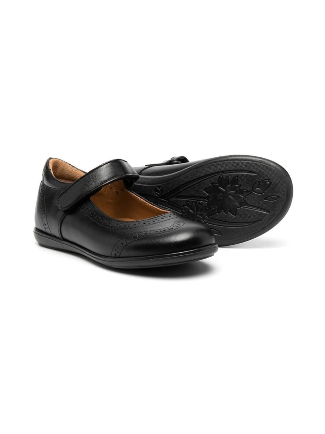 Стелька с логотипом, застежка на липучке спереди, закругленный носок и плоская подошва. Цвет: черный.