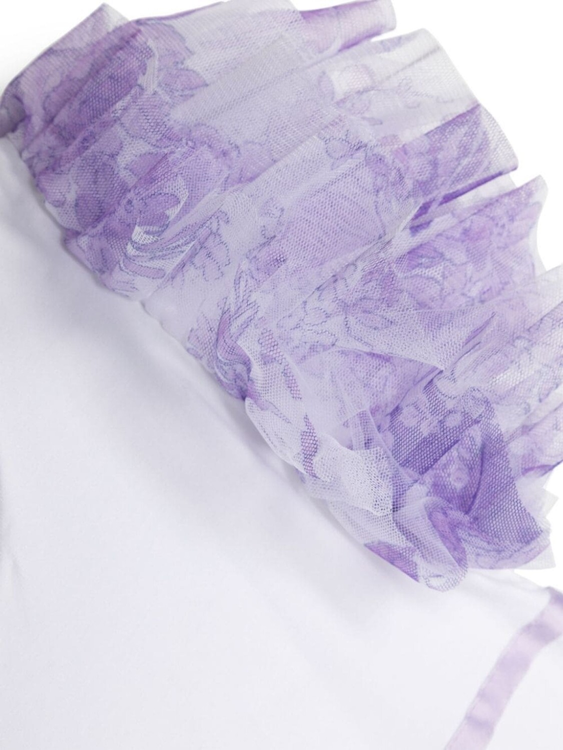 Белый/фиолетовый, эластичный хлопок, вставки с оборками, ремешки, V-образный вырез, короткие рукава, прямой подол