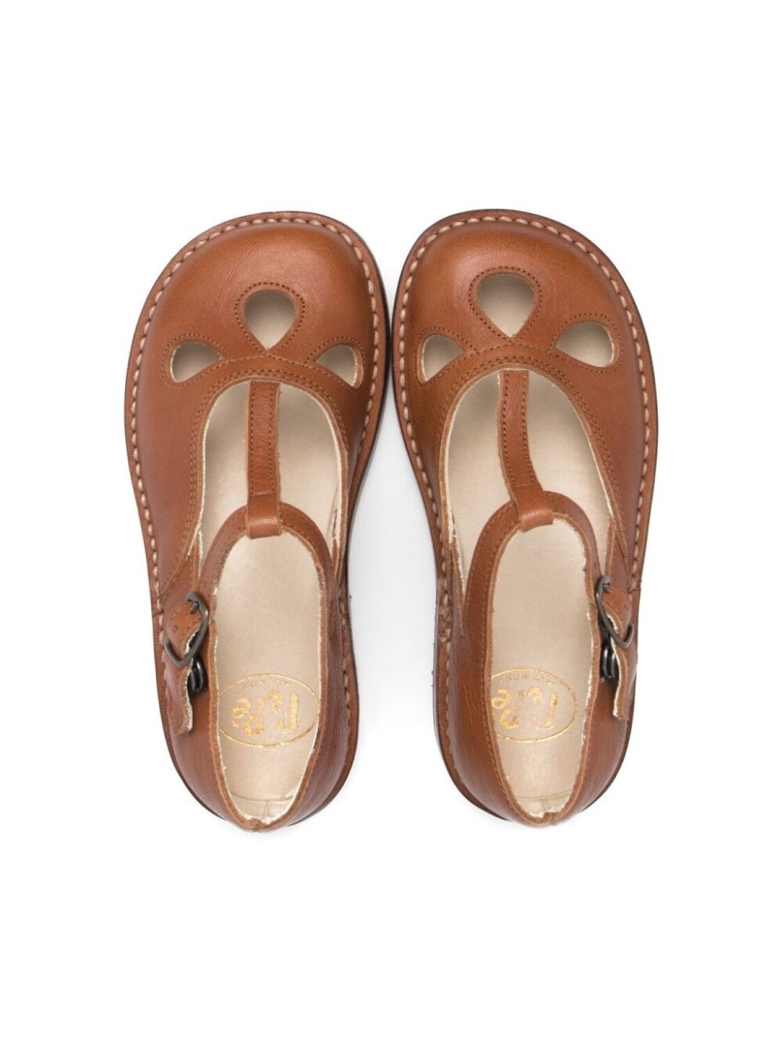 Закругленный носок, вырезные детали, ремешок на щиколотке с пряжкой, стелька с логотипом и резиновая подошва. Цвет: коричневый.