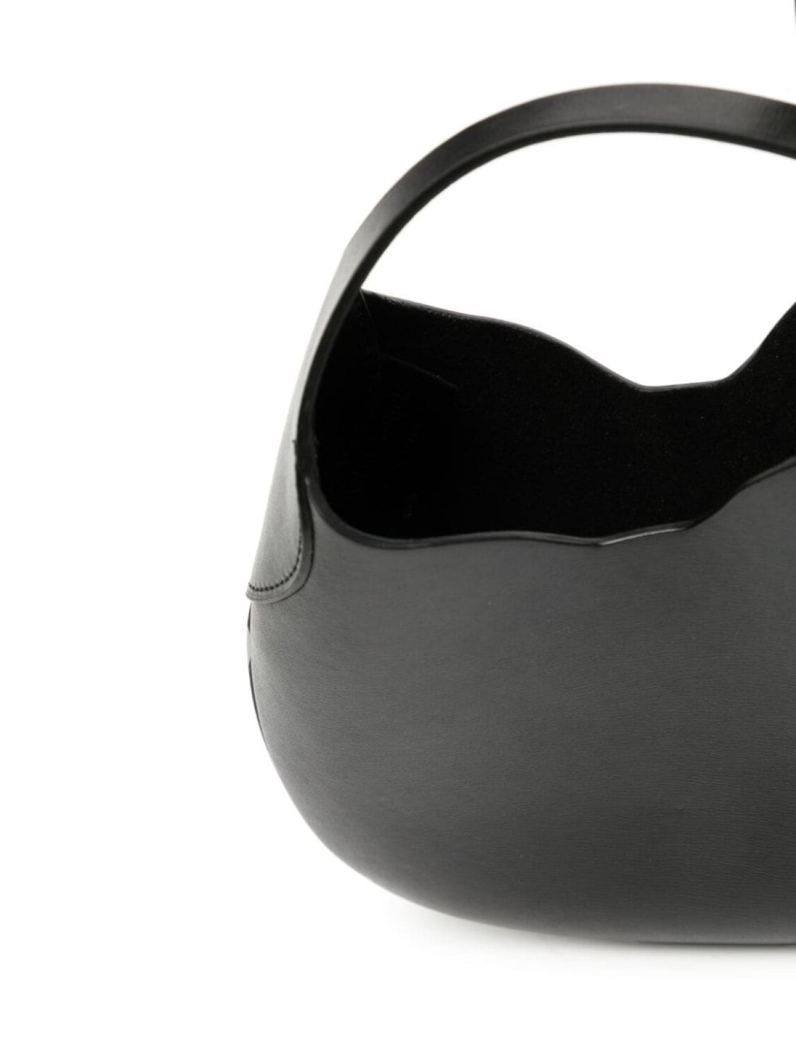 Черный, телячья кожа, золотистый металлический логотип, выгравированный логотип, застежка с ремешком, регулируемый ремень на плечо и основное отделение.