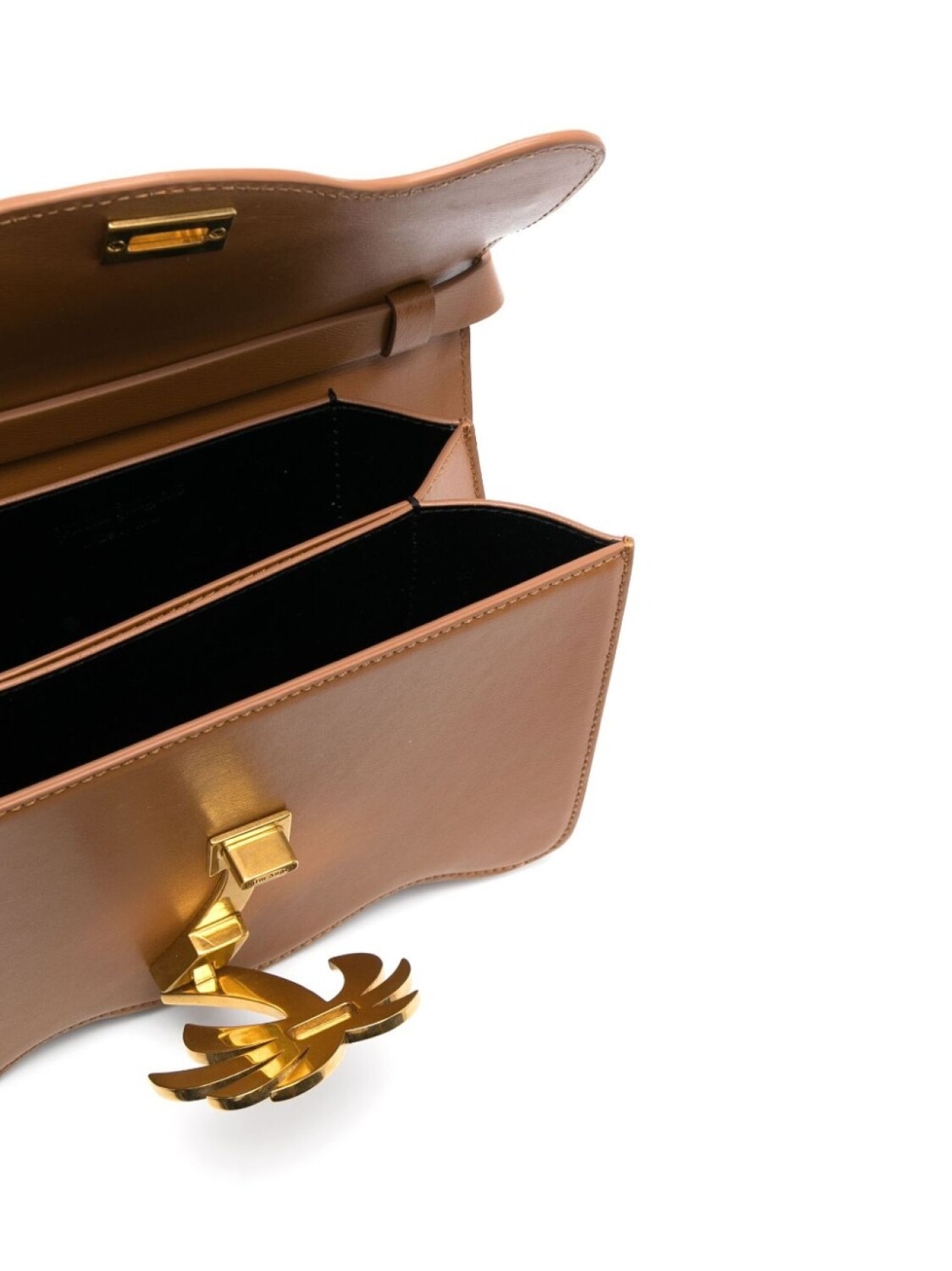 Коричневый, телячья кожа, откидной клапан и регулируемый ремень на плечо.