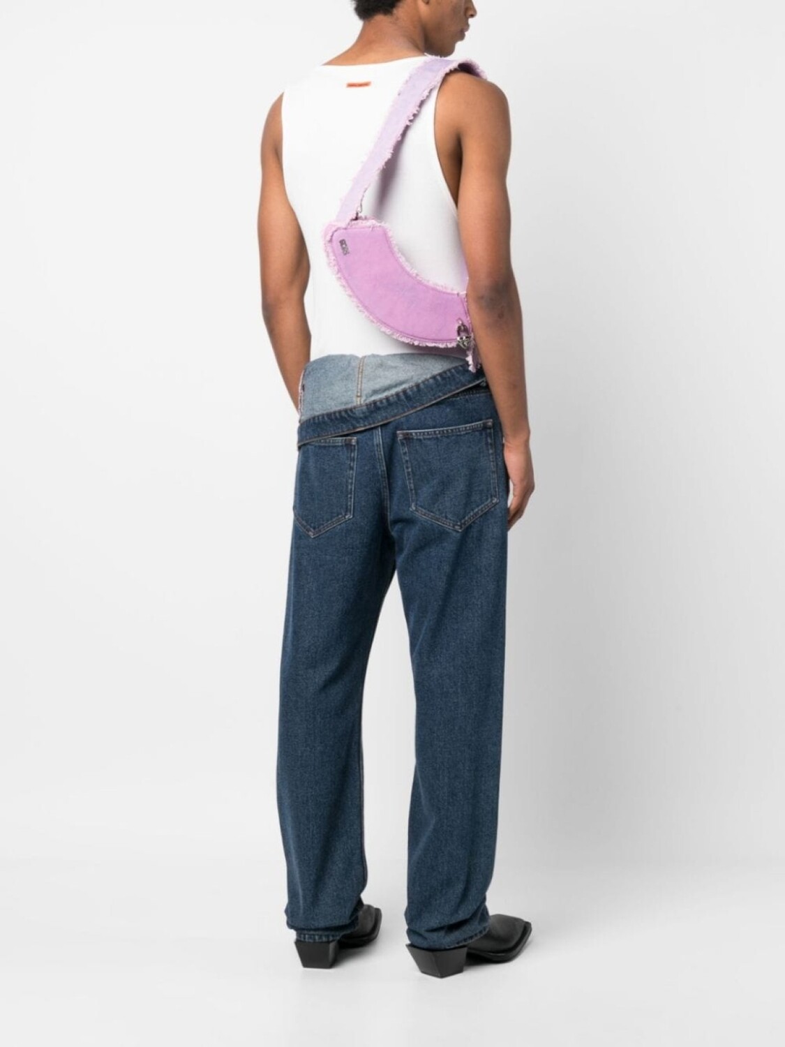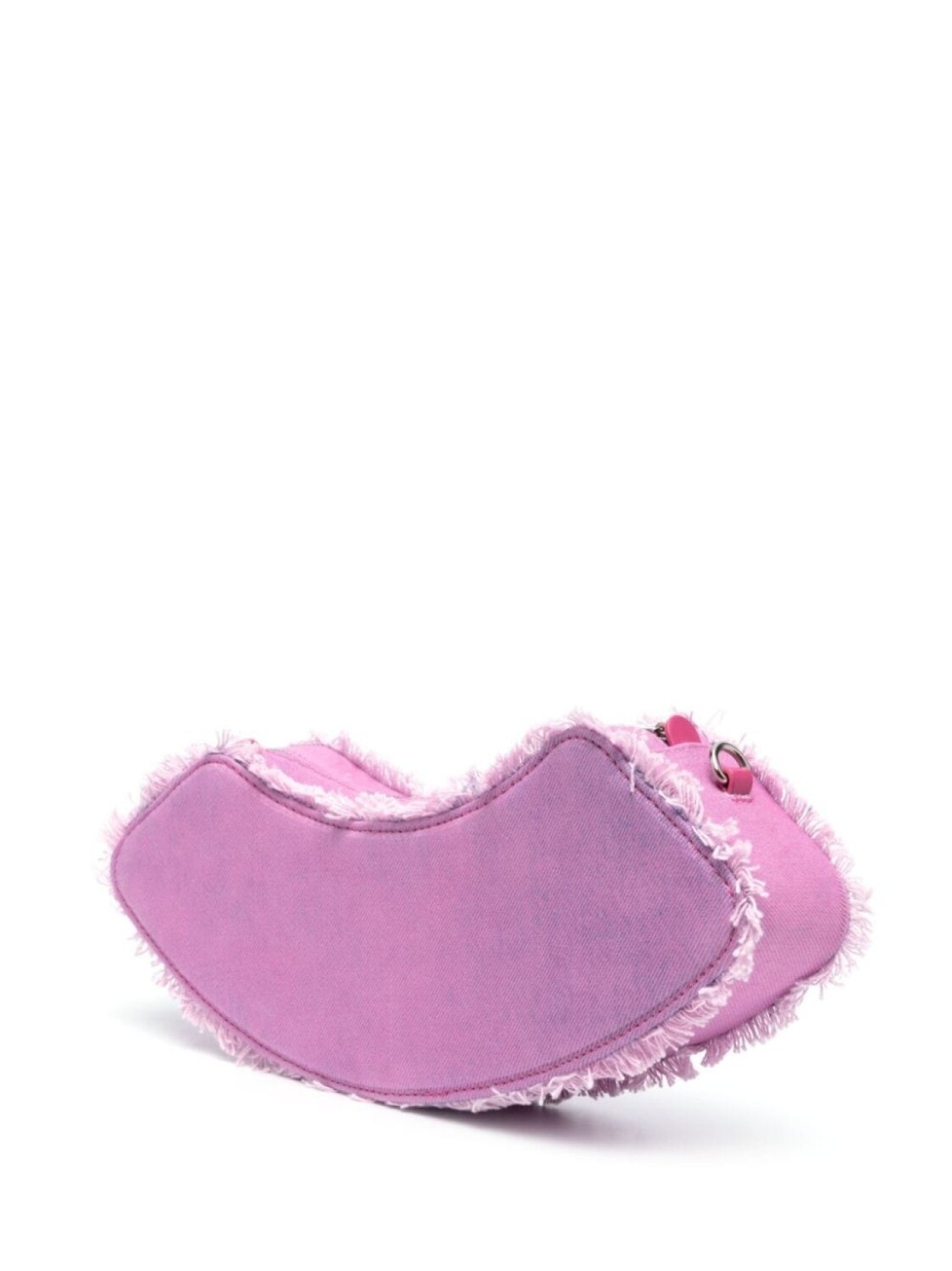 Фуксия, хлопок, телячья кожа, деним, эффект обесцвечивания, необработанные края, подвеска, застежка на молнии сверху, съемный ремень на плечо, внутреннее отделение для карт и основное отделение.