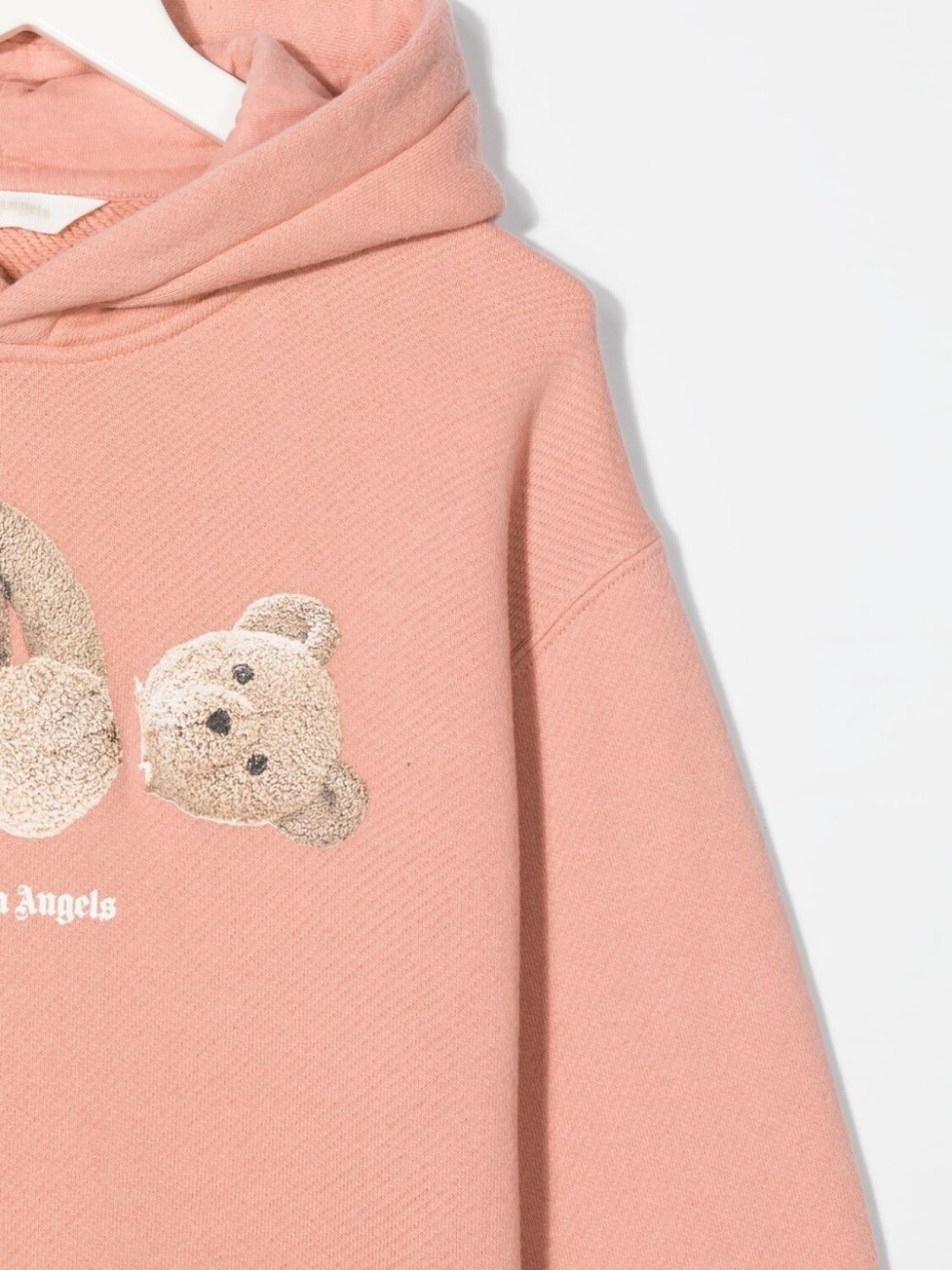 Розовый, коричневый, хлопок, флисовый материал, принт с изображением плюшевого медведя, логотип спереди, классический капюшон, длинные рукава и прямой подол.