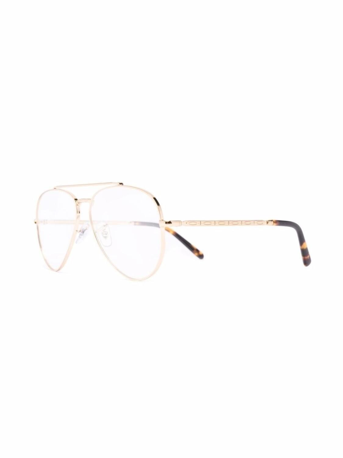 Оправа «авиатор», носоупоры, прямые дужки и дужки с закругленными концами. Обратите внимание, что на FARFETCH продаются оправы с линзами без диоптрий. В комплект входит защитный чехол для очков.