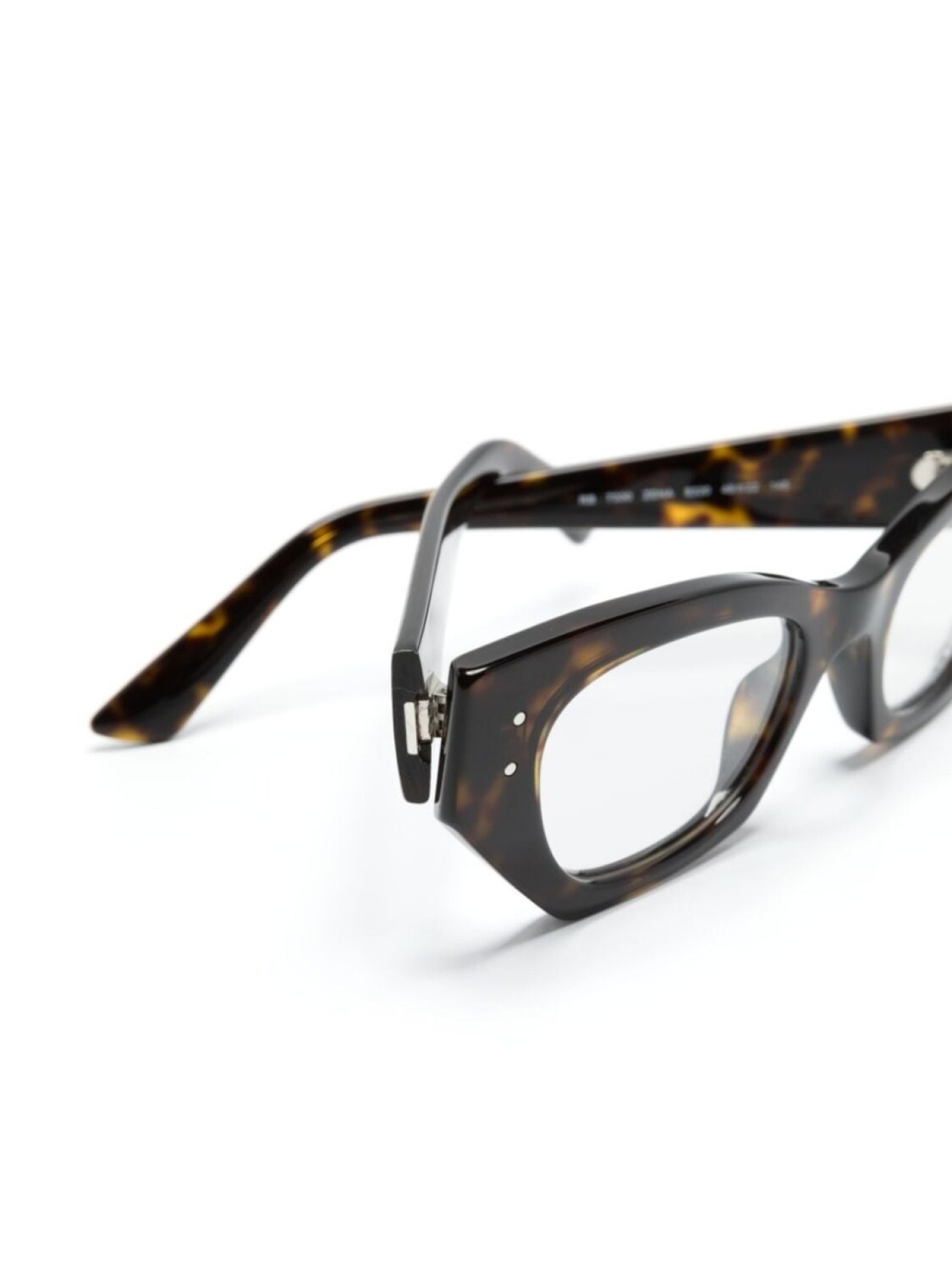 Коричневый, эффект черепашьего панциря, ацетат, оправа геометрической формы, заклепки, прозрачные линзы, гравированный логотип на дужках, скульптурные дужки, дужки с закругленными концами, В комплект входит защитный чехол для очков., Обратите внимание, что на FARFETCH продаются оправы с линзами без диоптрий.
