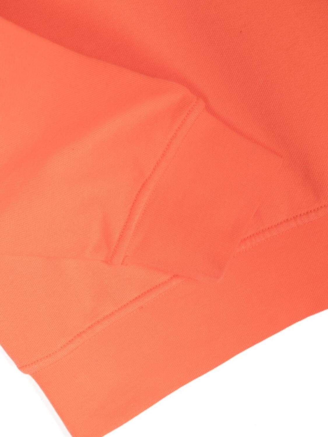 Оранжево-красный, хлопок, ткань джерси, нашивка с логотипом на рукаве, круглый вырез, длинные рукава и прямой подол.