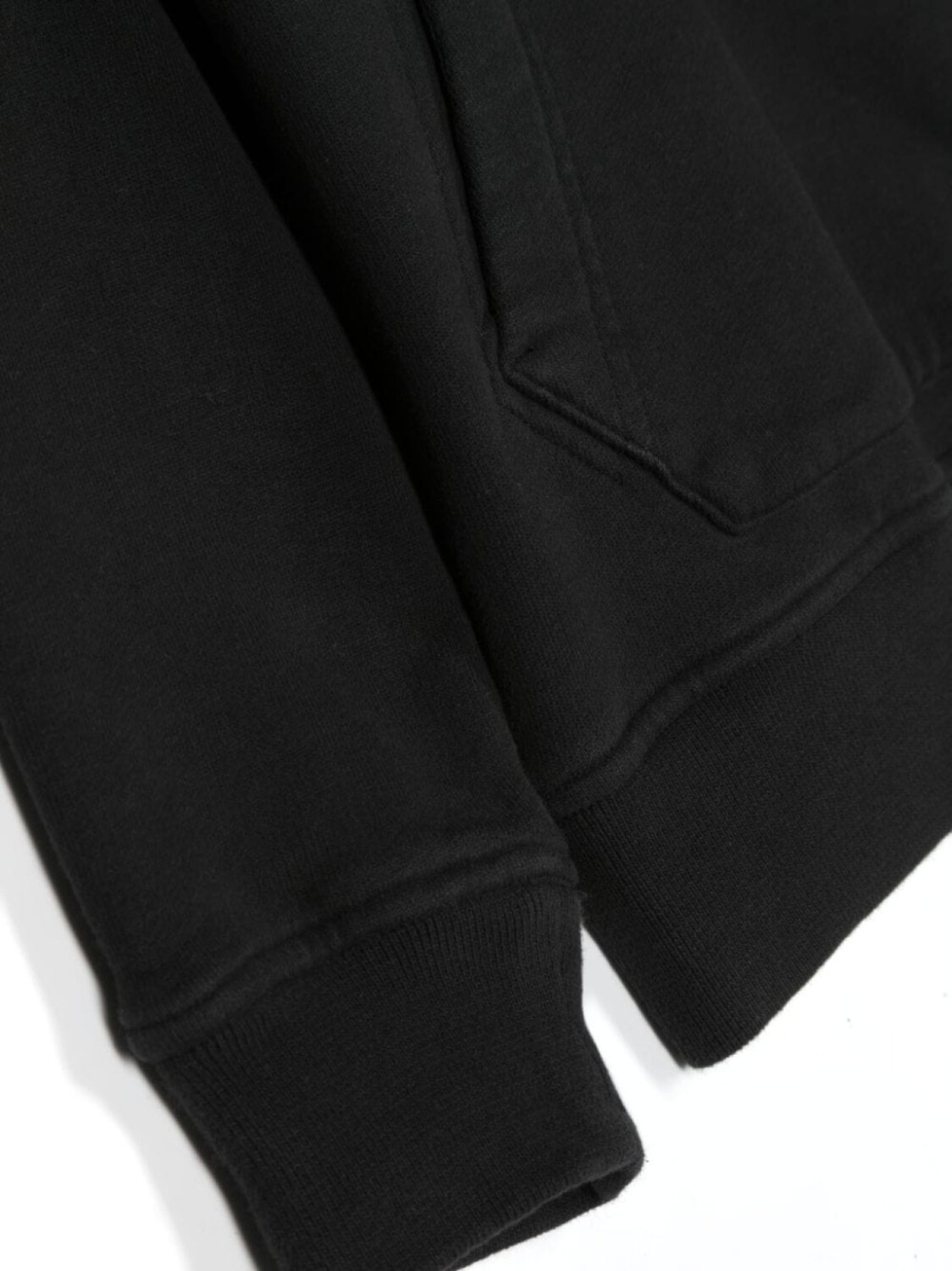 Черный, хлопок, знаковая деталь в виде компаса, классический капюшон, карман-муфта, длинные рукава и прямой подол.
