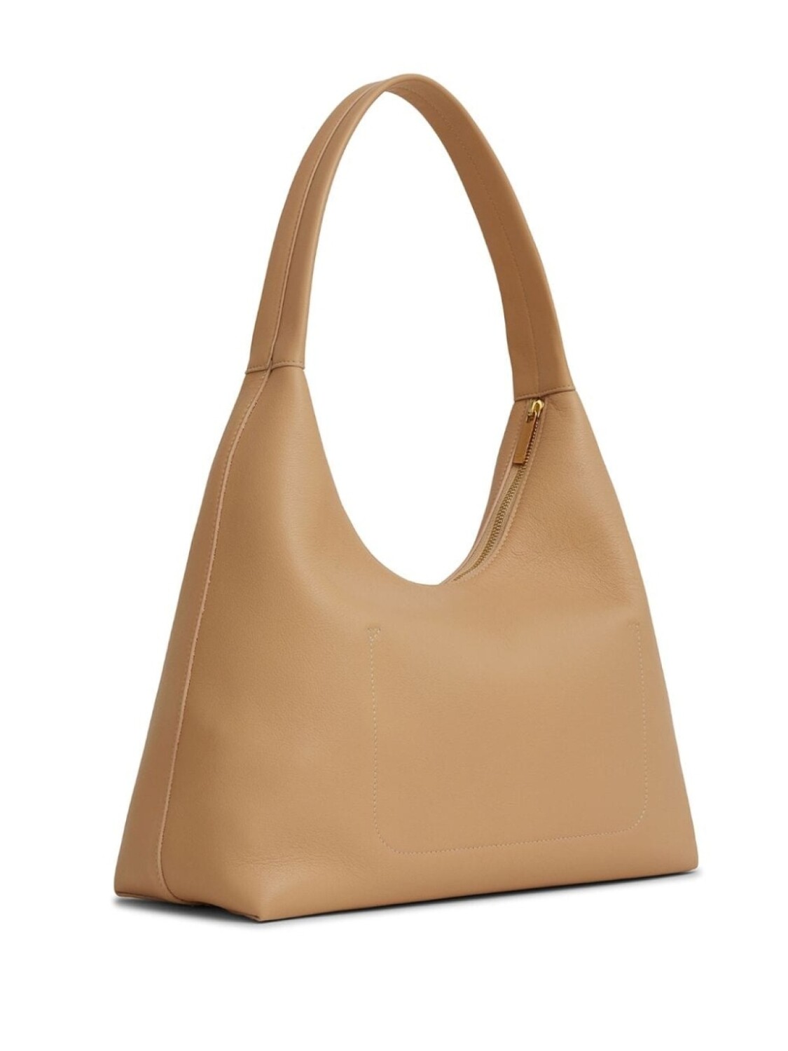 Песочно-бежевый, телячья кожа, замшевая подкладка, тисненый логотип спереди, тисненый логотип внутри, застежка на молнии сверху, ремень на плечо, основное отделение и внутренний прорезной карман.