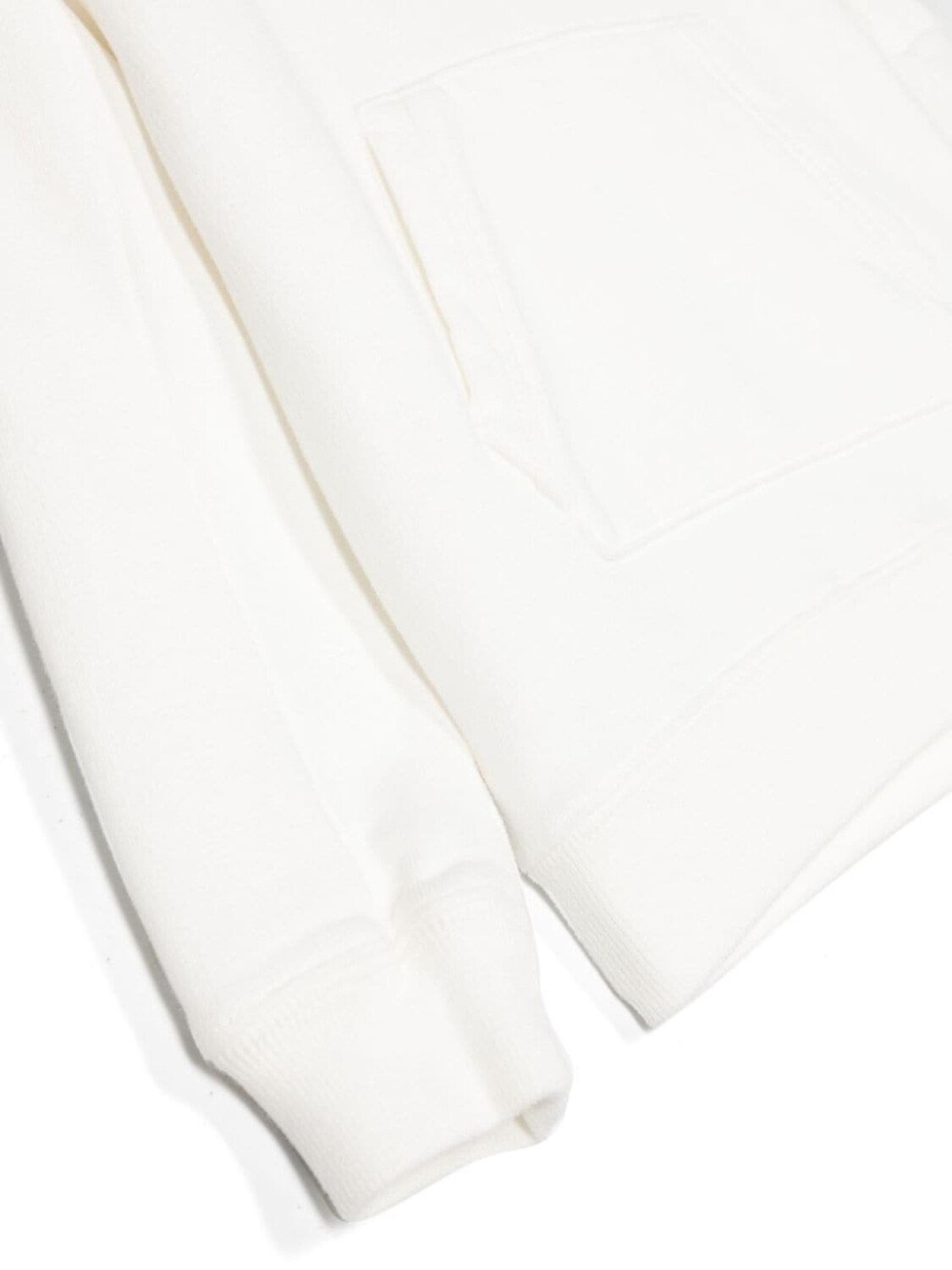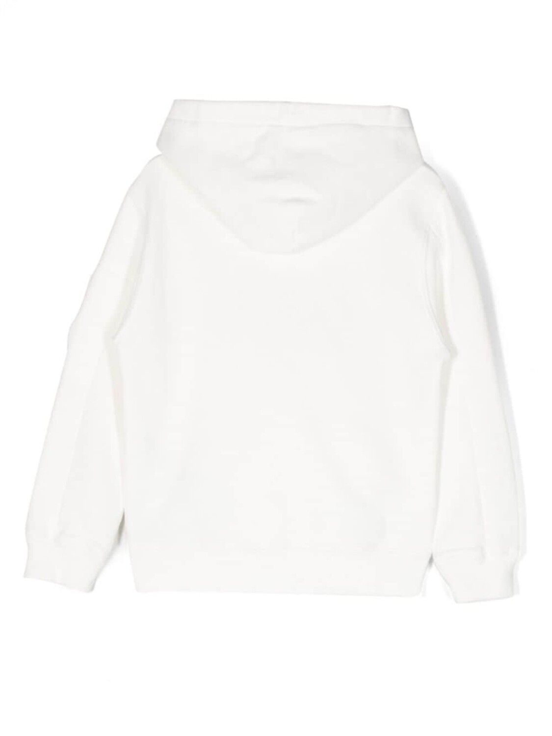 Белый, хлопок, декоративная линза, классический капюшон, длинные рукава, карман с молнией на рукаве, карман-муфта и прямой подол.