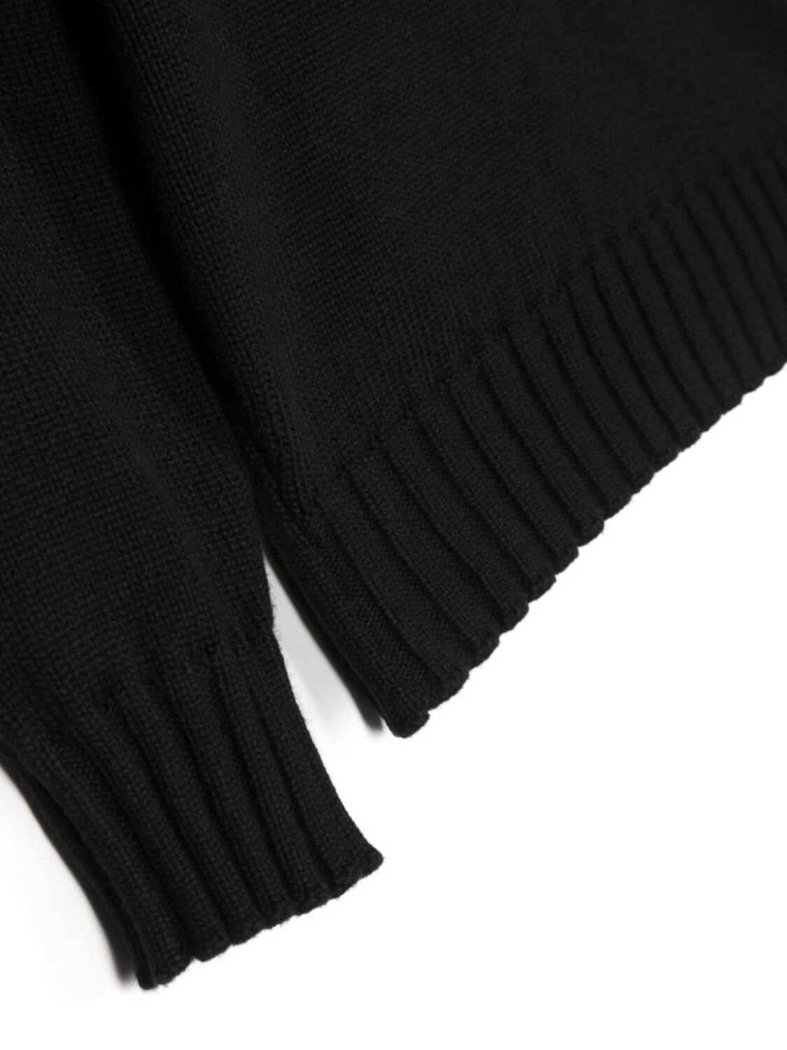 Черный, смесовый хлопок, трикотажный материал, знаковая деталь в виде компаса, воротник-труба, длинные рукава, прямой подол и подол с фестонами.