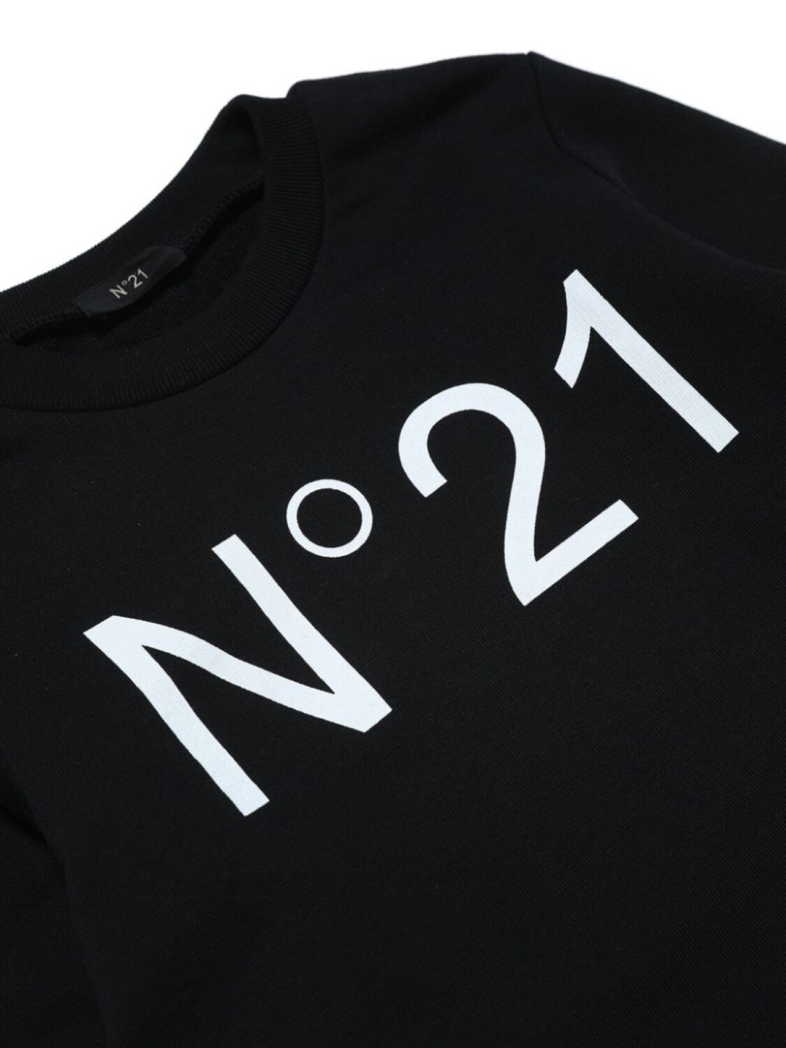 Черный, хлопок, логотип спереди, круглый вырез, длинные рукава и прямой подол.
