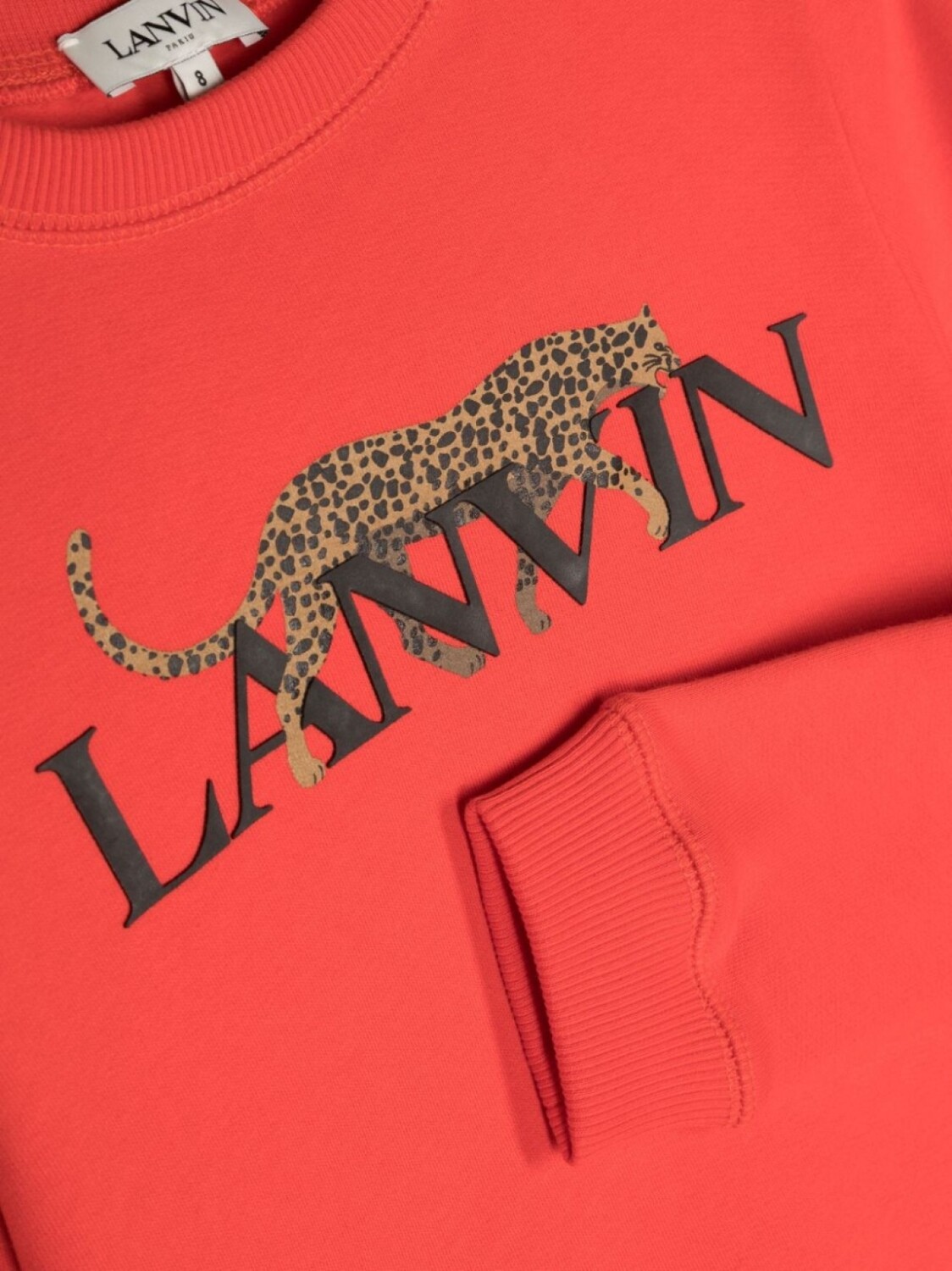 Ярко-красный, хлопок, логотип спереди, леопардовый принт, круглый вырез, длинные рукава, эластичные манжеты и эластичный подол.