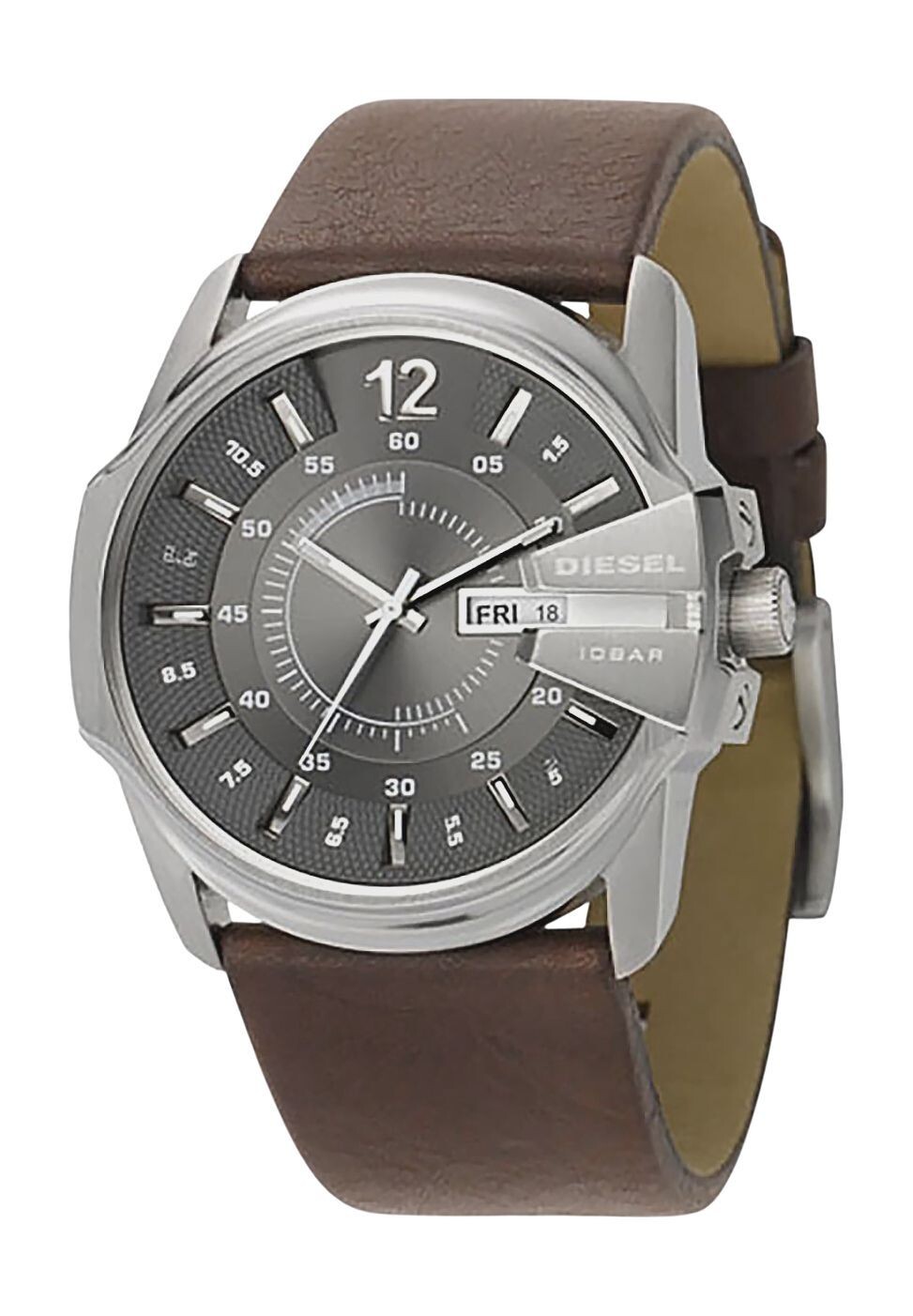 Мужские часы DIESEL из серии Master Chief сочетают в себе стильный дизайн и функциональность. Кожаный ремешок обеспечивает высокий уровень комфорта. Корпус водонепроницаем до 10 бар, поэтому можно купаться, принимать душ и плавать.