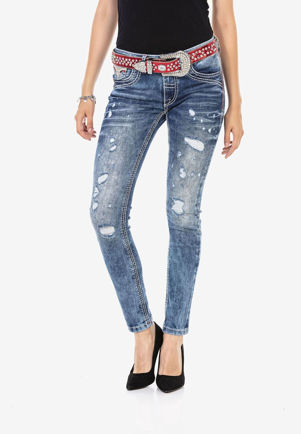 Джинсы по-прежнему очень модны. Cipo & Baxx представляет эту облегающую модель для женщин, которая бросается в глаза моде и придает каждому образу что-то определенное. Здесь комфорт и модный внешний вид идут рука об руку. Модные использованные элементы придают повседневный и непринужденный вид. В сочетании с облегающим кроем, подчеркнутыми двойными швами и идеальной посадкой с комфортным характером можно создавать интересные и в то же время суперкомфортные повседневные образы для повседневной жизни и отдыха.