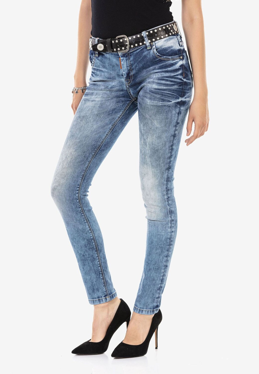 Джинсы по-прежнему очень модны. Эта модель от Cipo & Baxx имеет классную, легкую расцветку и впечатляет своим поношенным видом. Благодаря узкому крою оно облегает тело и идеально подходит для женственных нарядов. Благодаря производству хлопка и полиэстера комфортом при ношении никогда не пренебрегают.