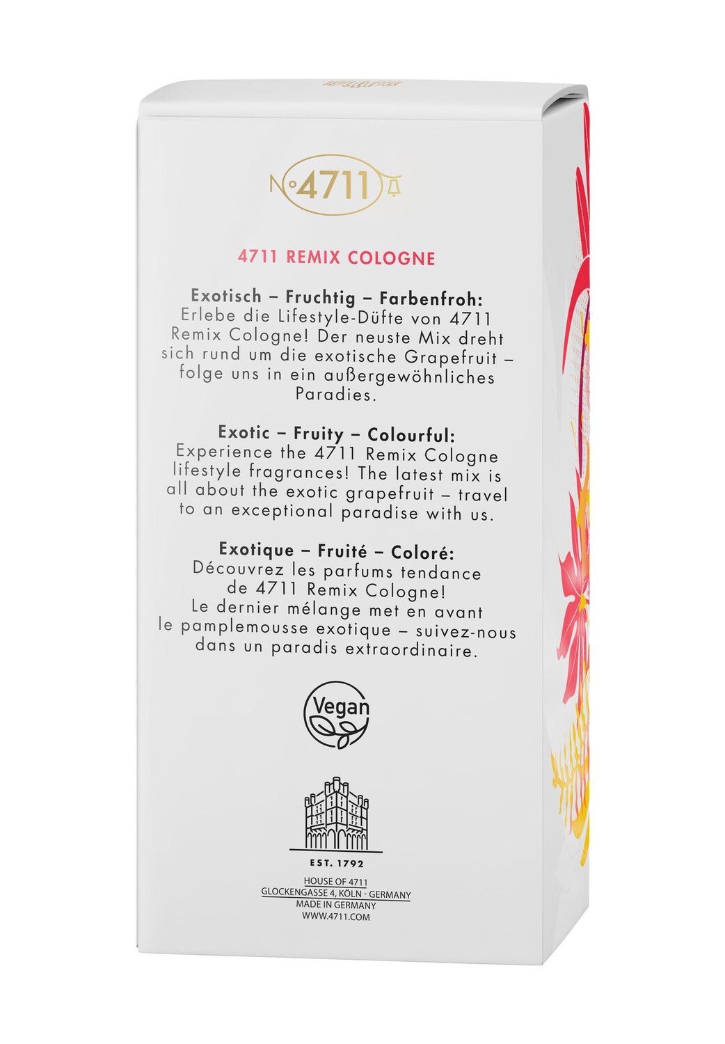 Следуя девизу «Я МОЙ РАЙ», вы сами решаете, куда идти. Вы сами решаете, насколько диким, сумасшедшим и ярким он станет – 4711 Remix Exotic Paradise сопровождает вас. Свежий, дерзкий аромат с искрящейся силой: акцент делается на экзотических нотах грейпфрута. Совсем нехорошо, но объявление для носа! В сердце аромат дополняется цветочными нотами и за счет этого приобретает разнообразие – летний букет из магнолии, желтой фрезии и флердоранжа. Сандал, копченая древесина и мускус придают базовому аромату стойкость.