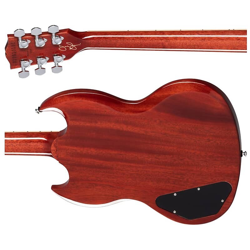 Электрогитара SG Special с 22 ладами выполнен в богатом цвете Vintage Cherry и имеет корпус из красного дерева, переплетенный гриф из красного дерева с закругленным профилем, накладку на гриф из индийского палисандра, порожек GraphTech, колки Grover Rotomatic. с кнопками в современном стиле и двойными хромированными звукоснимателями P-90.