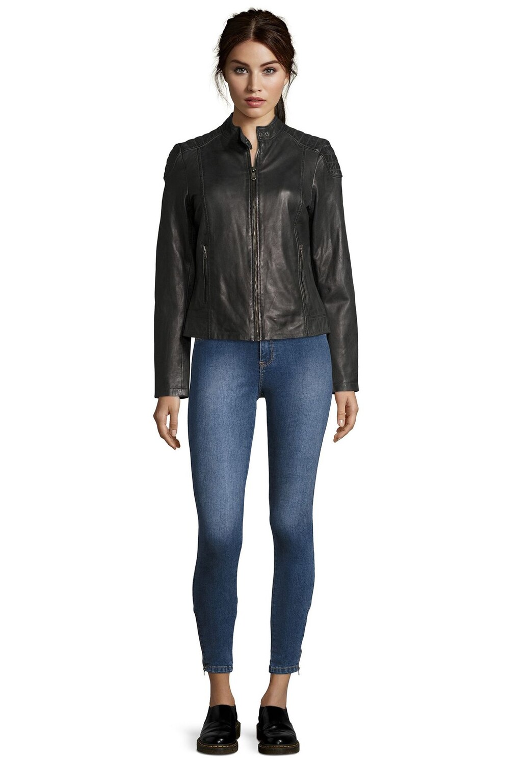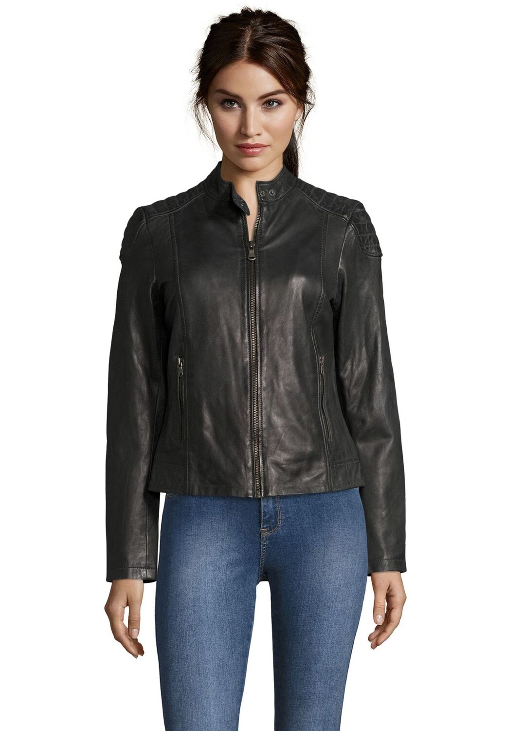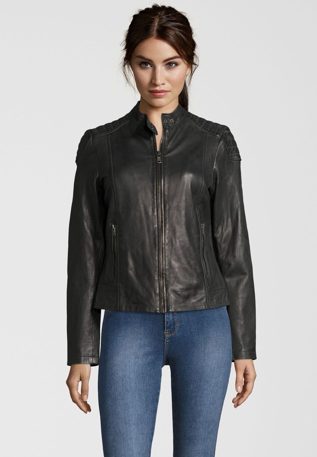 Кожаные куртки просто никогда не выходят из моды! 7eleven представляет особенно привлекательную модель для женщин, которая привлекает внимание своим стильным и модным дизайном. Куртка изготовлена из высококачественной кожи и очень удобна в ношении. Модель, ориентированная на моду, заканчивается выше бедер и совершенно проста, имеет застежку-молнию, два внешних кармана и воротник на пуговицах — стильный минималистичный образ, который впечатляет. Чистить куртку можно только специальным средством для чистки кожи.