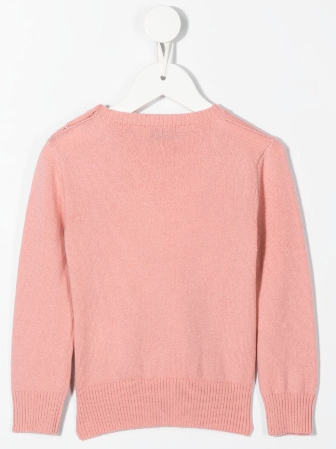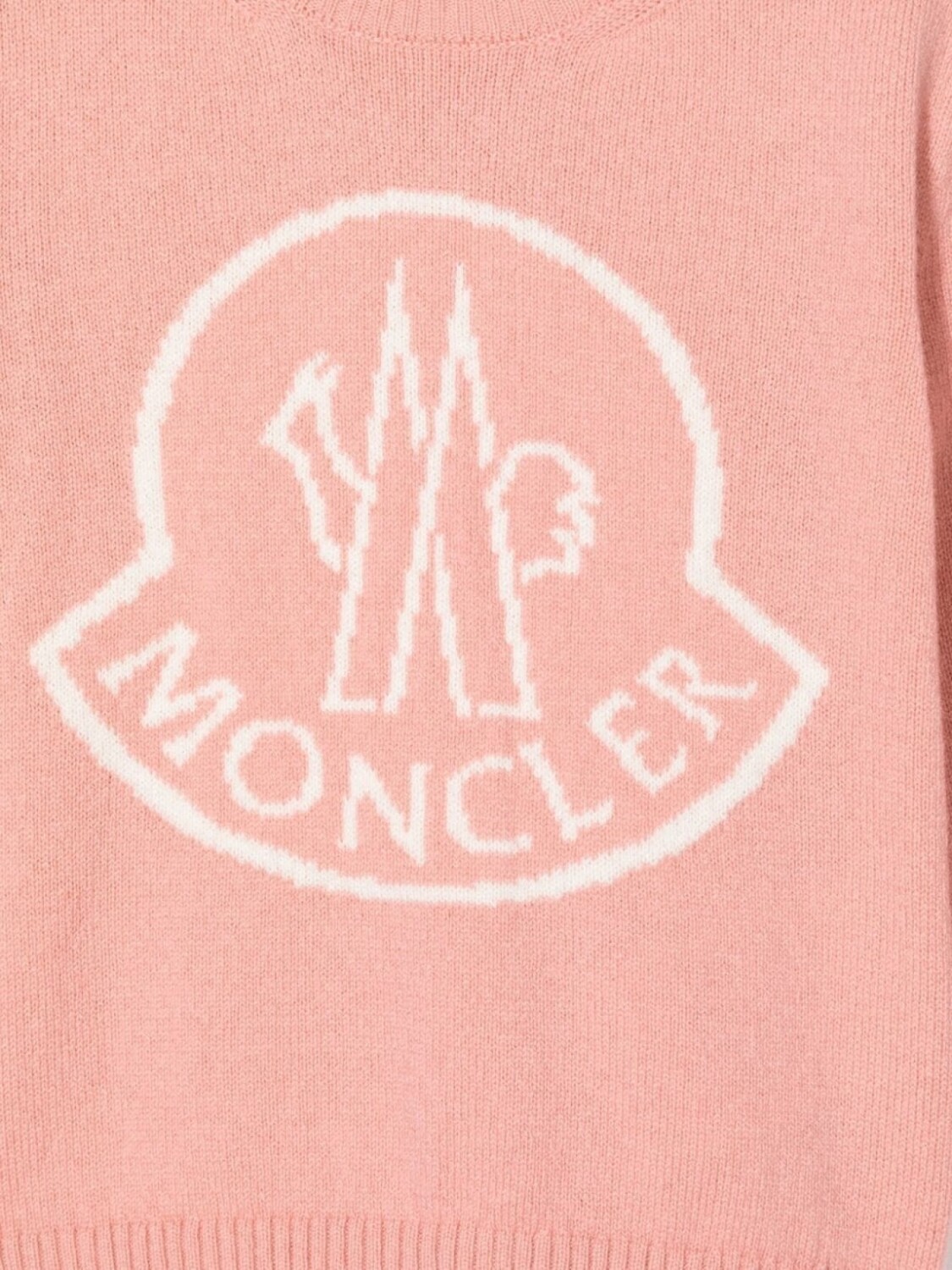 Смесь шерсти и кашемира, расцветка Blush Pink, принт с логотипом на груди, круглый вырез и длинные рукава.