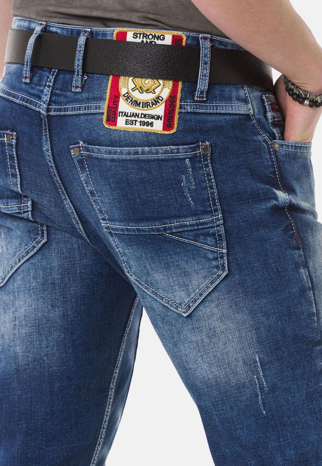Джинсы в модном потертом виде CIPO & BAXX, синий