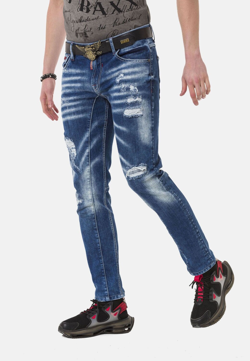 Джинсы в модном потертом виде CIPO & BAXX, синий
