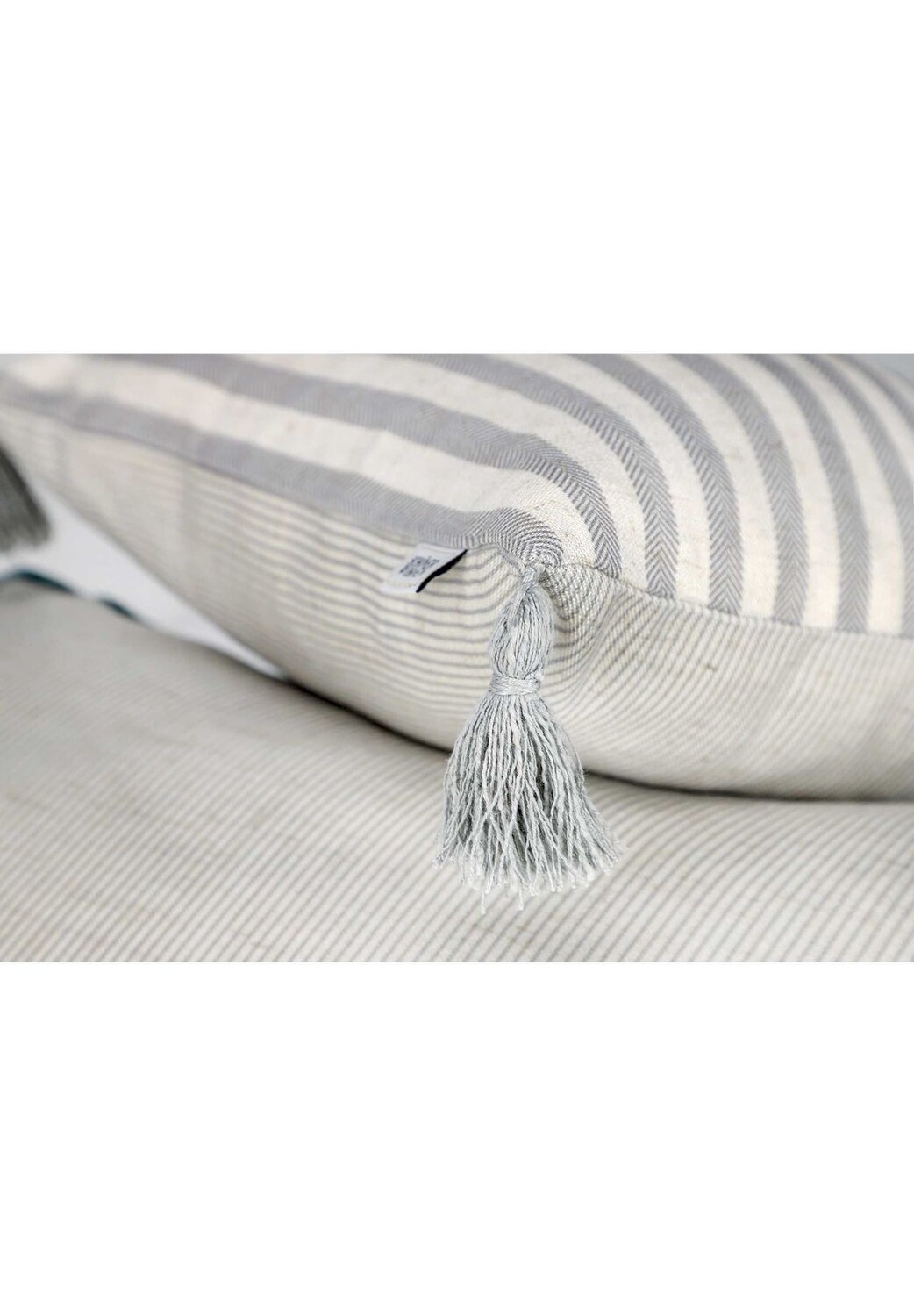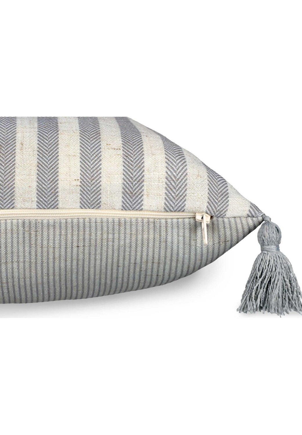 Описание товара: Декоративные чехлы на подушки — это простой способ придать вашему дому нотку элегантности и стиля. Наша подушка «Привычка» из ткани, имитирующей лен, не является исключением. Передняя часть чехла на подушку привлекает внимание эффектным узором в виде полос, напоминающим классическую елочку. Этот дизайн придаст вашей комнате вневременной оттенок и привнесет нотку изысканности. На спине имеются тонкие полоски, которые создают тонкий контраст с узором спереди. Чтобы придать образу еще больше характера, по углам прикреплены четыре серые кисточки. Эти мелкие детали добавят игривости и сделают его привлекательным в вашем интерьере. Чехол изготовлен из 75% переработанного полиэстера и 25% льна, который не только экологичен, но и прост в уходе.