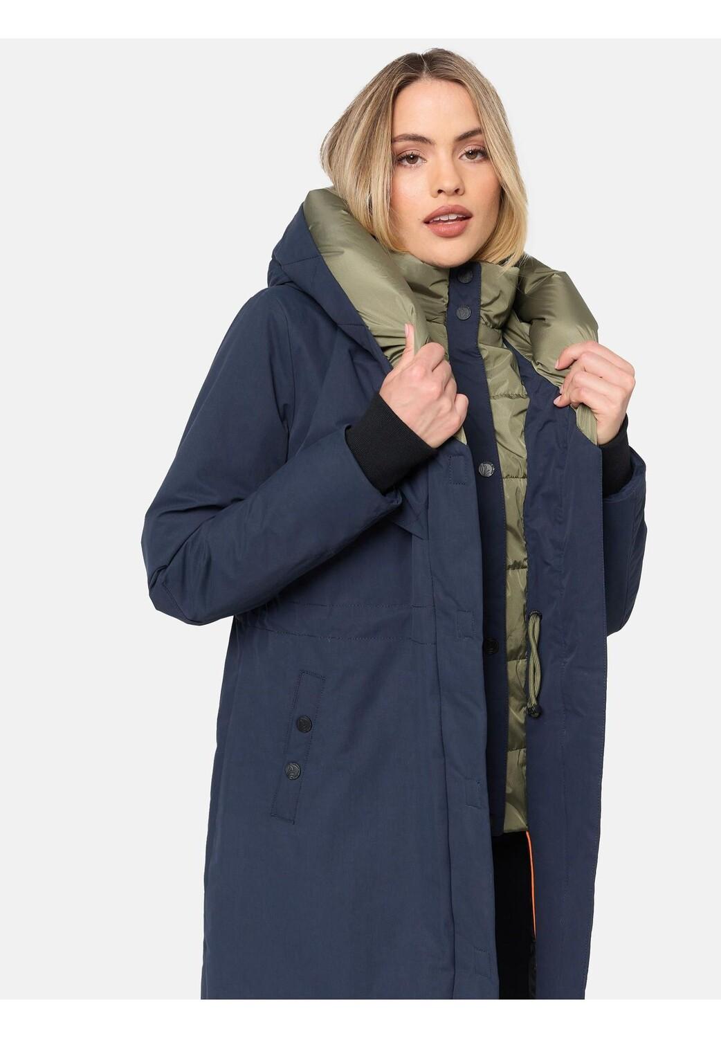 Описание товара: СМОТР: Стильное женское зимнее пальто с контрастными цветными элементами, высоким воротником и большим капюшоном на подкладке от бренда Navahoo – идеальный спутник в холодные дни осени и зимы! МАТЕРИАЛ: Нескользящий, водонепроницаемый и ветронепроницаемый внешний материал, бархатистая мерцающая внутренняя подкладка парки и мягкие ребристые манжеты на концах рукавов обеспечивают идеальную защиту от ветра и непогоды. ФИКСАЦИЯ: Длинная зимняя куртка прямого кроя длиной до до колен, посадку можно регулировать благодаря внутреннему шнурку на талии, который можно регулировать и комбинировать с любым стилем. ДЕТАЛИ: Многочисленные внутренние и внешние карманы, которые согреют ваши руки и обеспечивают достаточно места для хранения всех ценных вещей, внутренняя молния с кнопкой Защитная планка и внешняя двусторонняя молния с магнитом. - Защитная планка с клапаном отталкивает ветер.