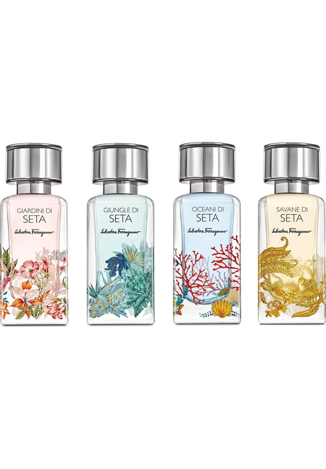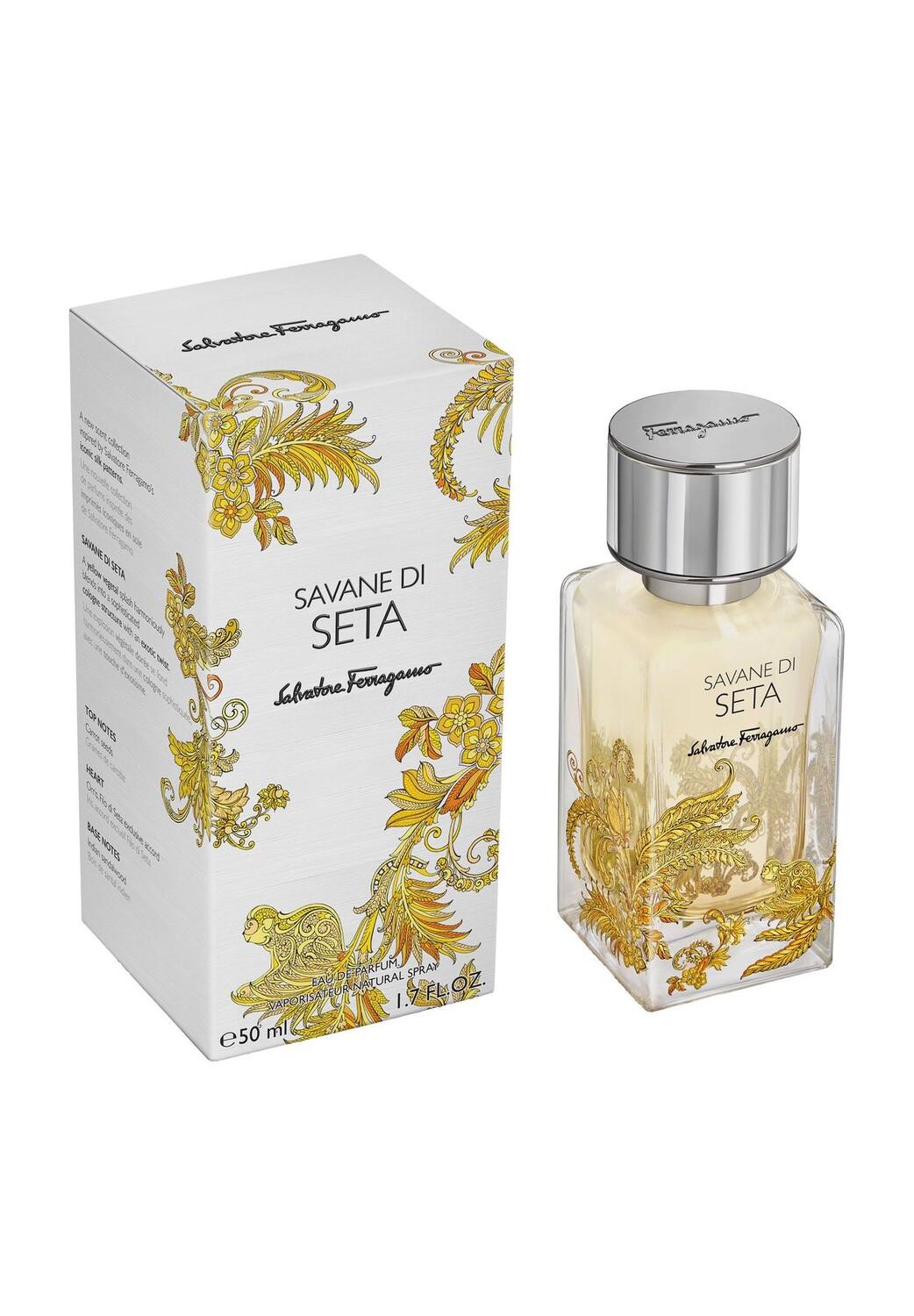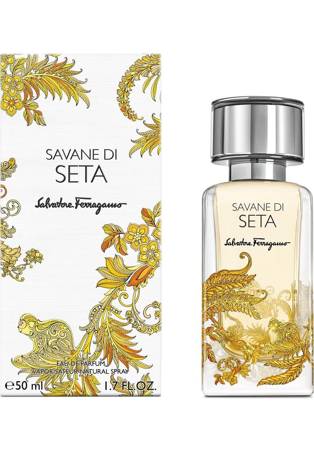 Savane di Seta вдохновлен палящим жарким днем ​​в саванне. Нежный ирис сочетается с удивительно терпкими нотами семян моркови и элегантно дополнен сливочными нотками сандала. Результат: необычайно теплая композиция Сальваторе Феррагамо, источник вдохновения которой при распылении можно увидеть практически перед собой.